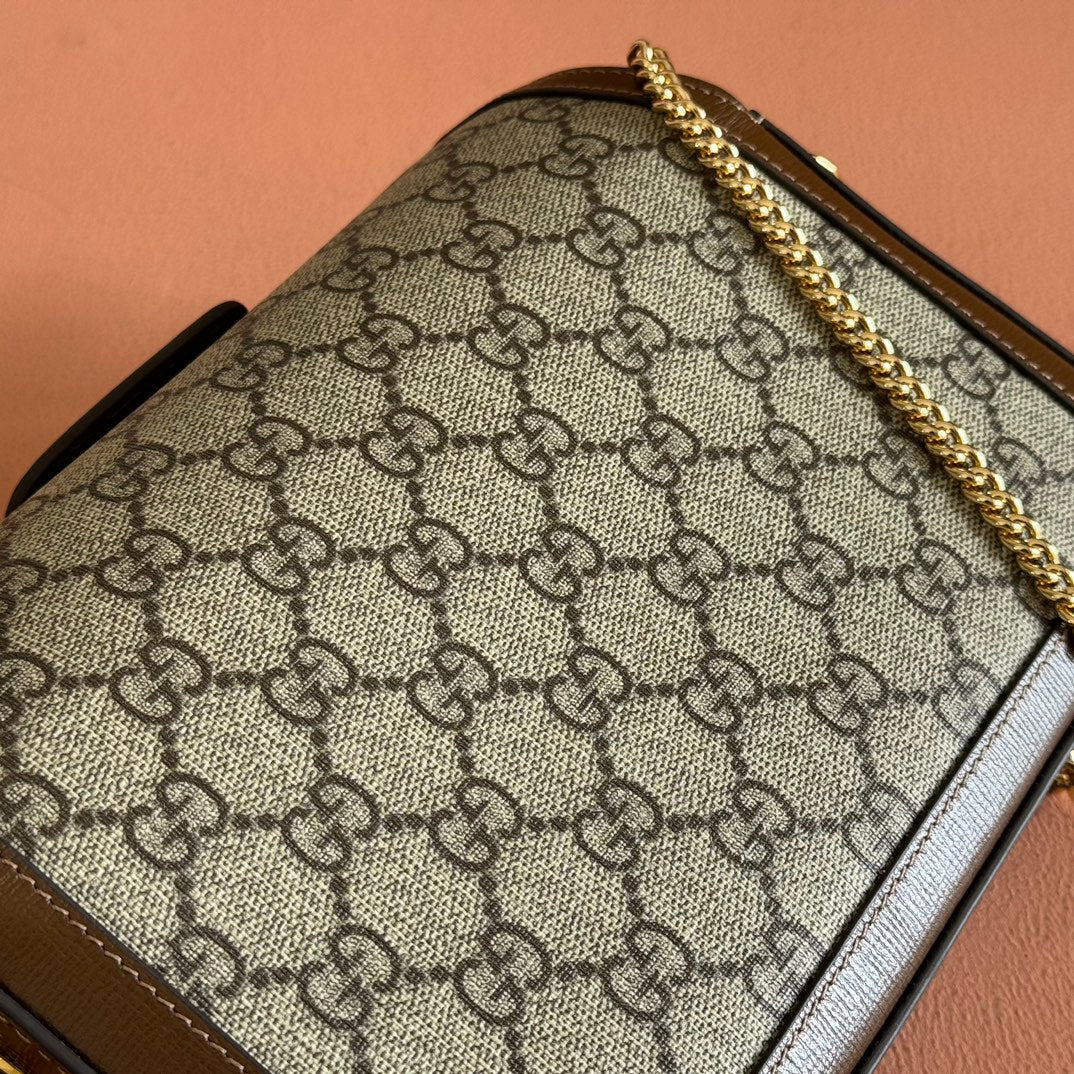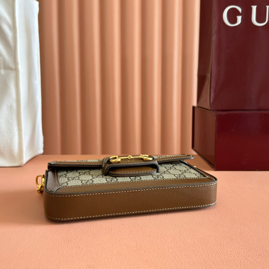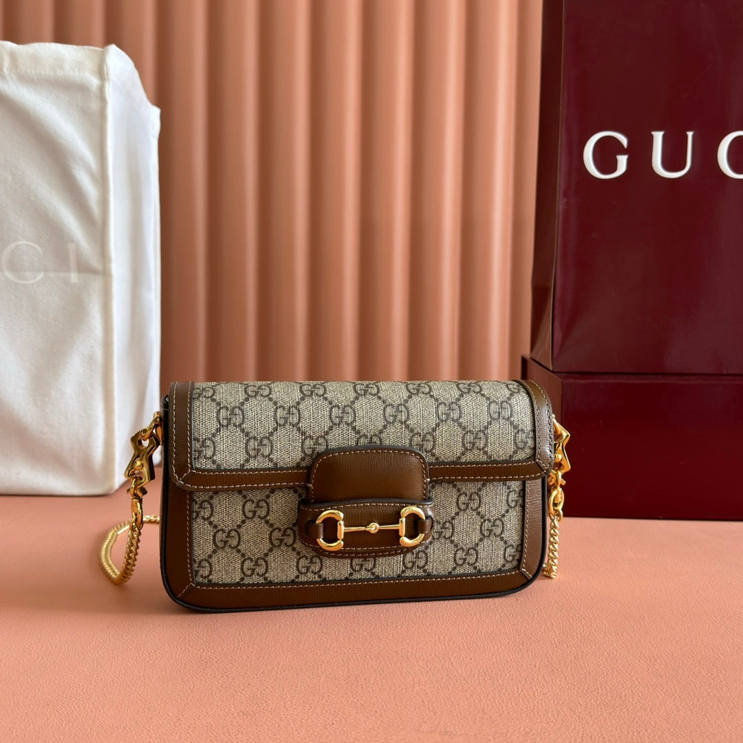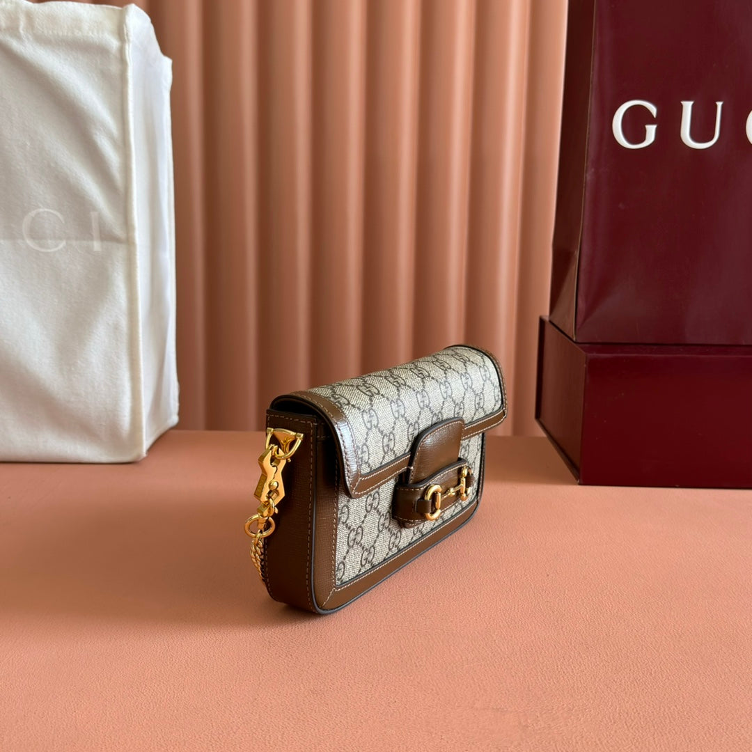 HORSEBIT 1955 SMALL 21.5 IN BEIGE EBONY GG SUPREME BROWN CALFSKIN GOLD HARDWARE