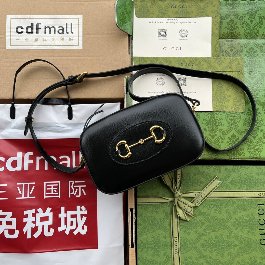 HORSEBIT 1955 SMALL CAMERA BAG 20 IN BLACK CALFSKIN