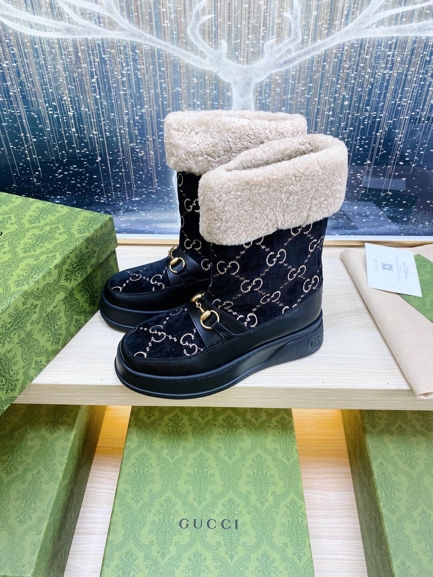 HORSEBIT ANKLE BOOTS WITH MERINO TRIM IN BLACK VELVET AND CALFSKIN