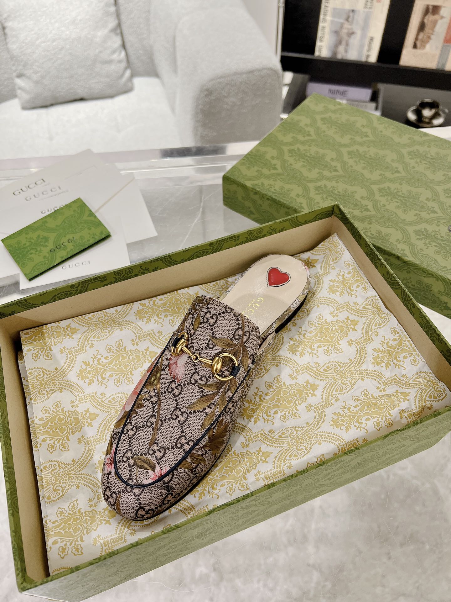 HORSEBIT FLOWER SLIPPER MULE IN DARK BEIGE MONOGRAM JACQUARD FABRIC