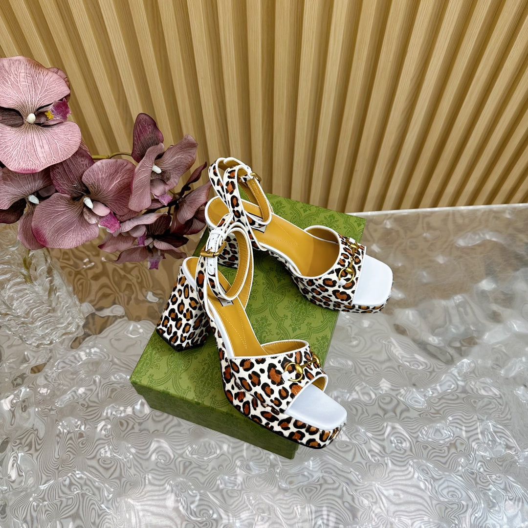 HORSEBIT HIGH-HEEL SANDAL WITH LEOPARD PRINT IN WHITE VELVET AND CALFSKIN LINING