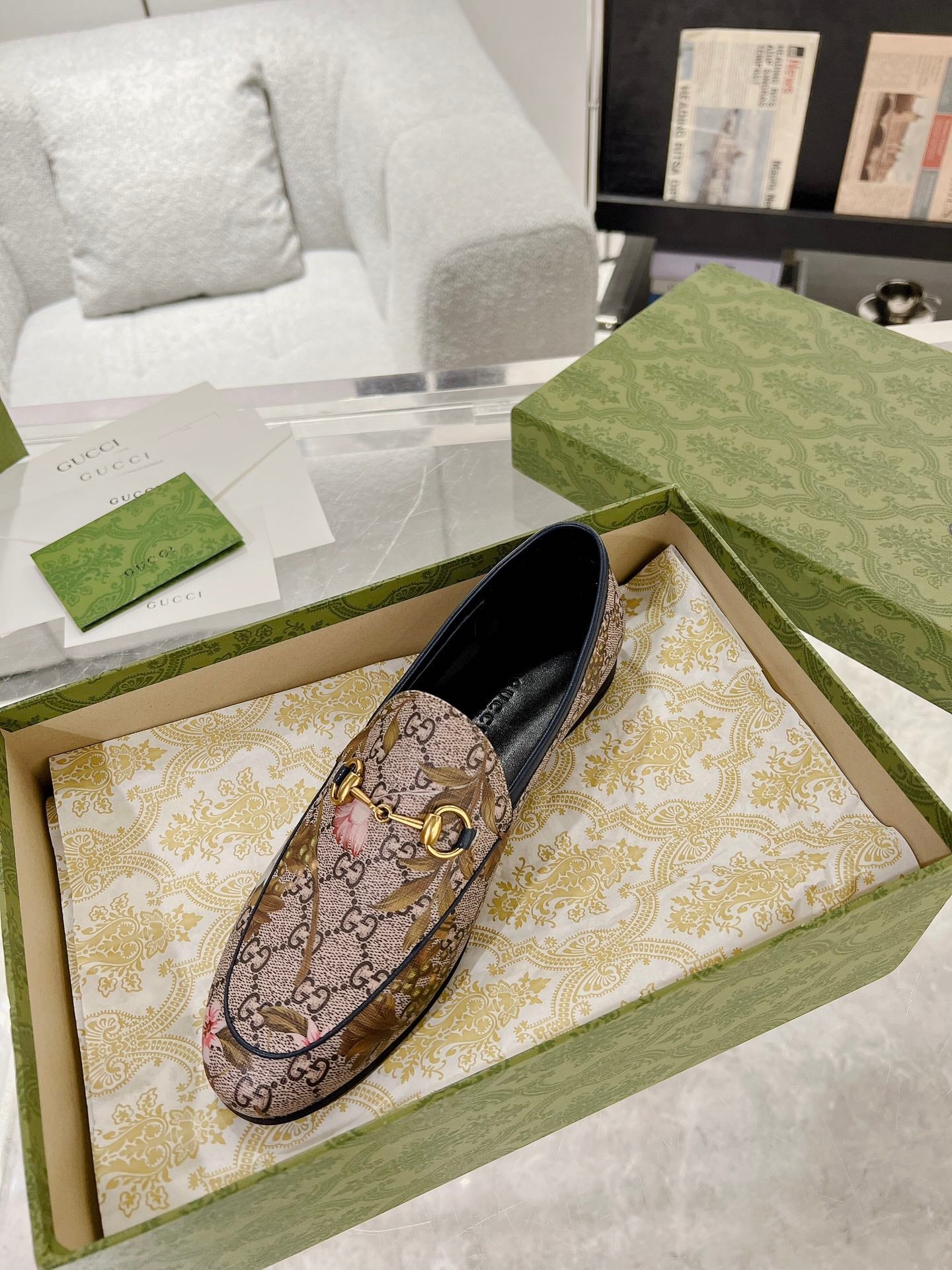 HORSEBIT LOAFER WITH FLOWER PRINT IN DARK BEIGE MONOGRAM JACQUARD FABRIC