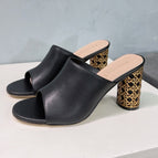 ICON HEELED SLIDE BLACK CALFSKIN 95 MM
