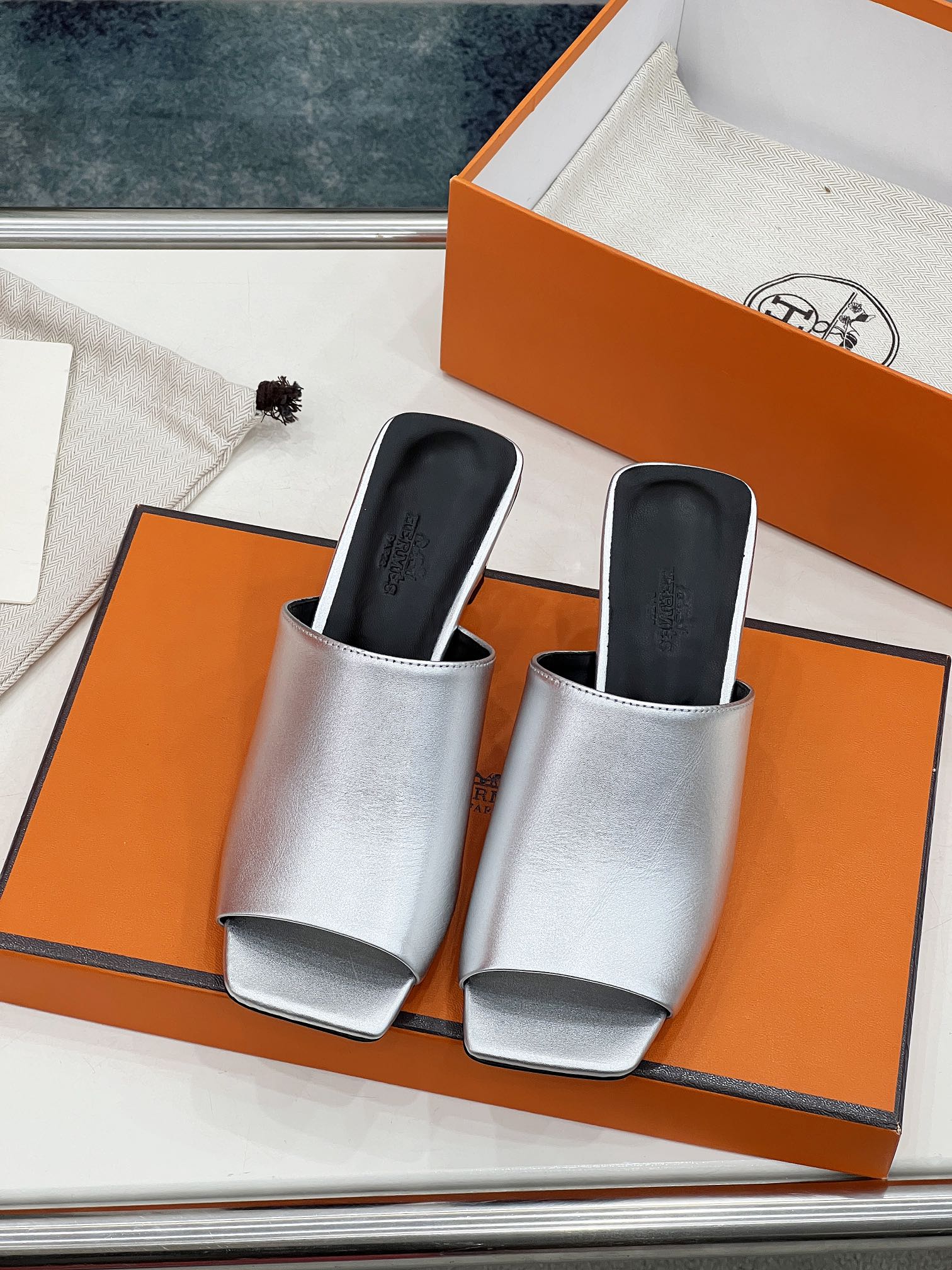 ICONIQUE 60 SANDAL IN SILVER CALFSKIN