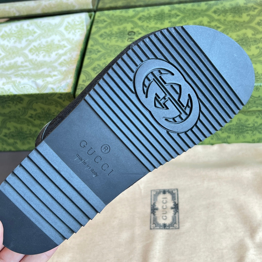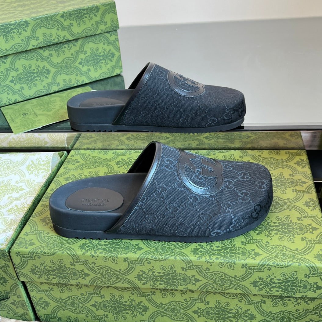 INTERLOCKING G MULE IN BLACK MONOGRAM CANVAS AND LEATHER