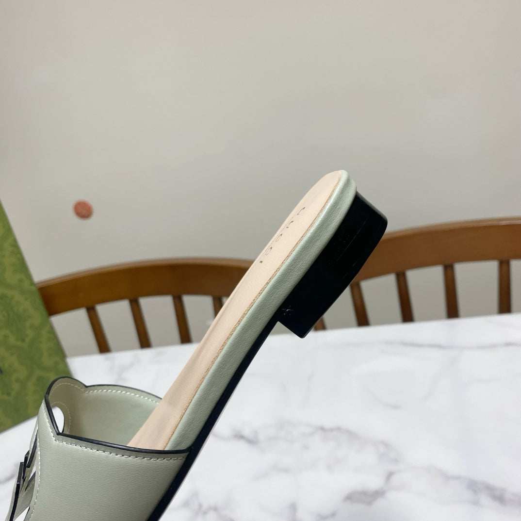 INTERLOCKING G SLIDE SANDAL IN PASTEL GREEN AND BEIGE CALFSKIN