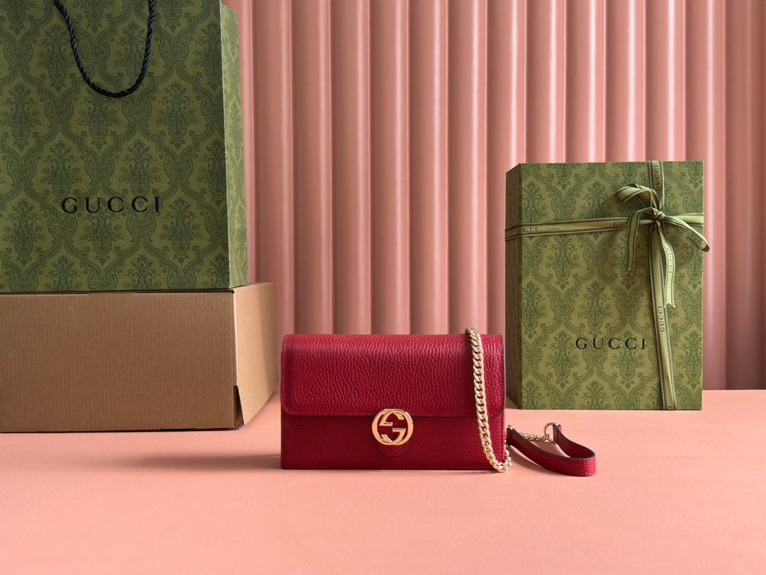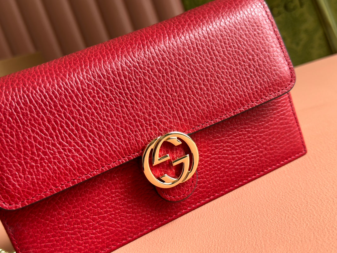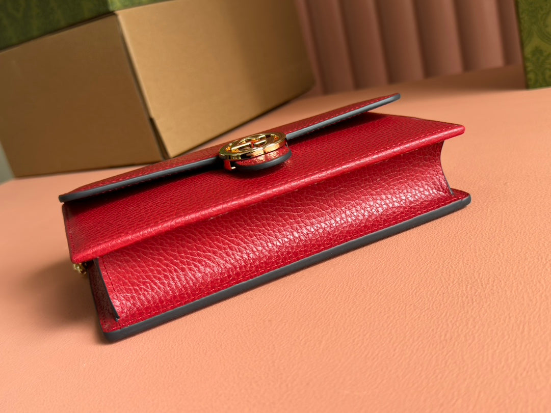 INTERLOCKING WOC 20 IN RED PEBBLED GRAINY CALFSKIN GOLD HARDWARE