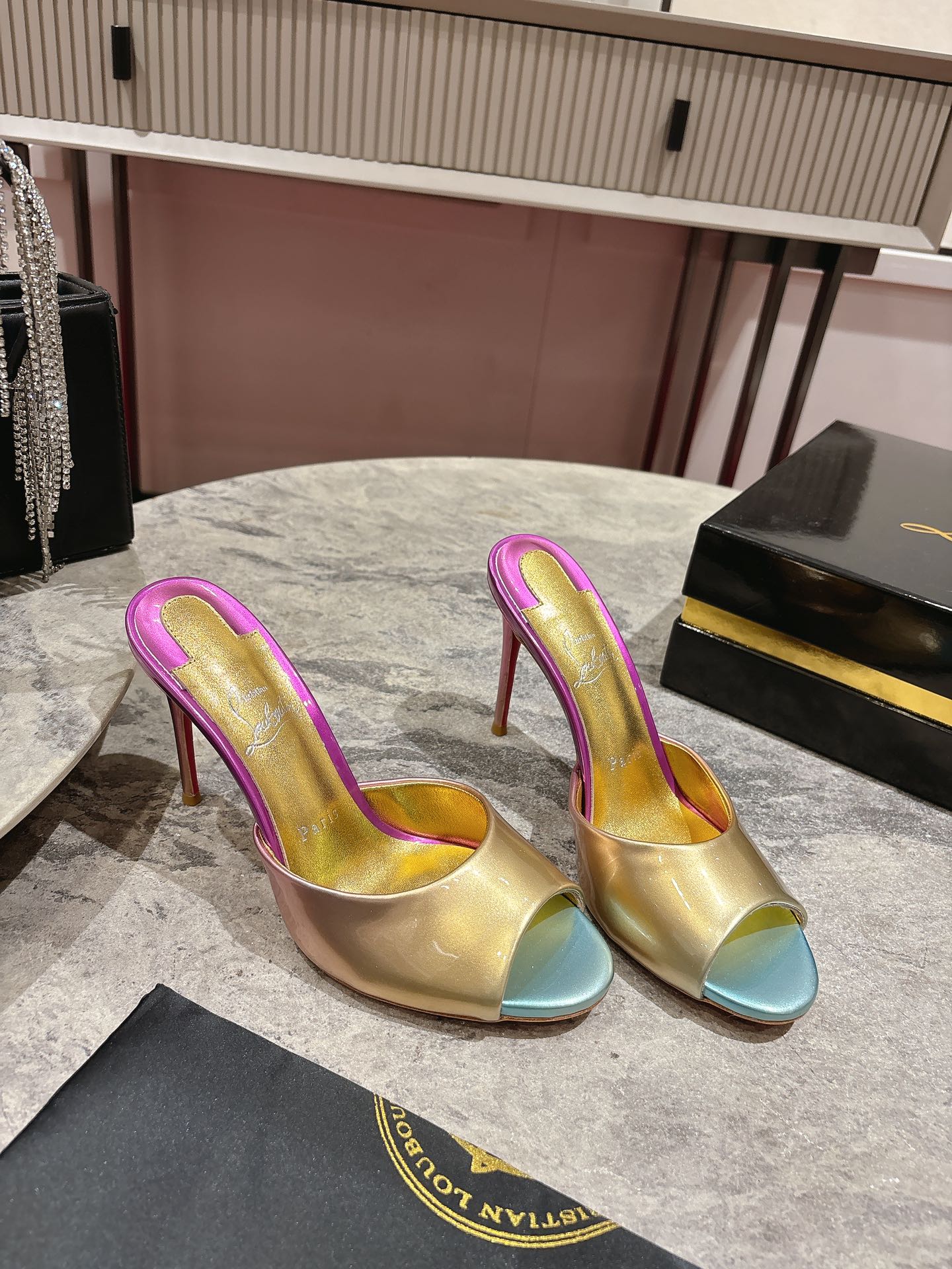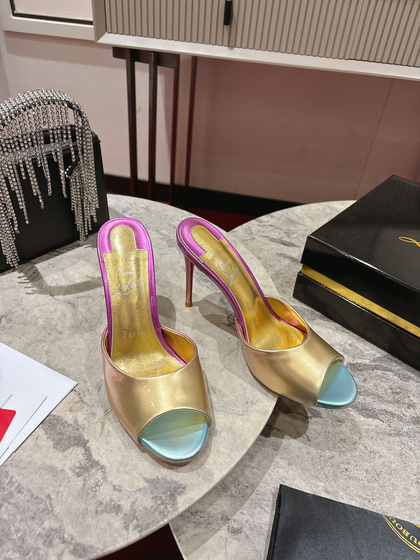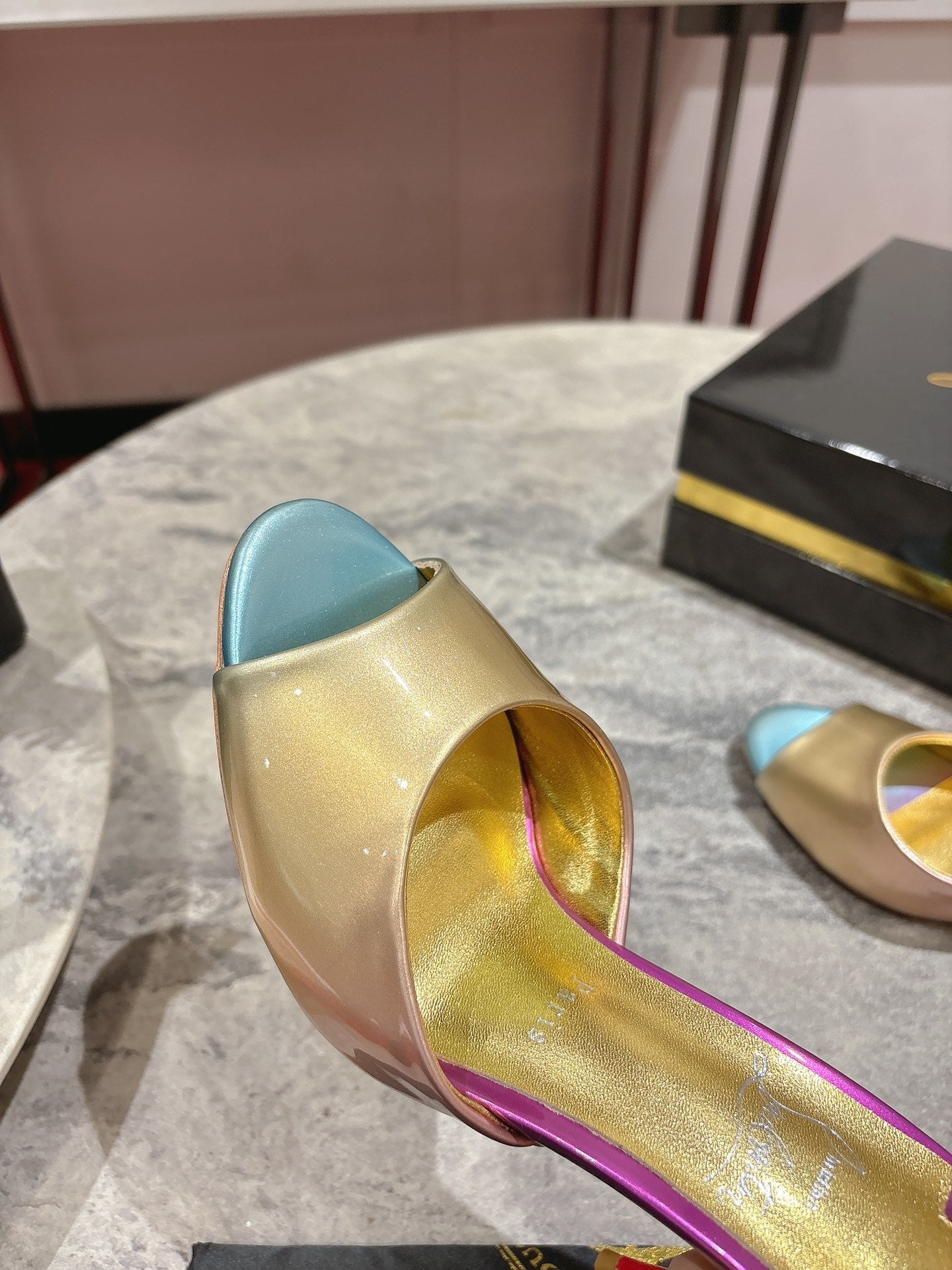 IRIDESCENT EFFECT MULES 100MM IN COLORFUL CALFSKIN