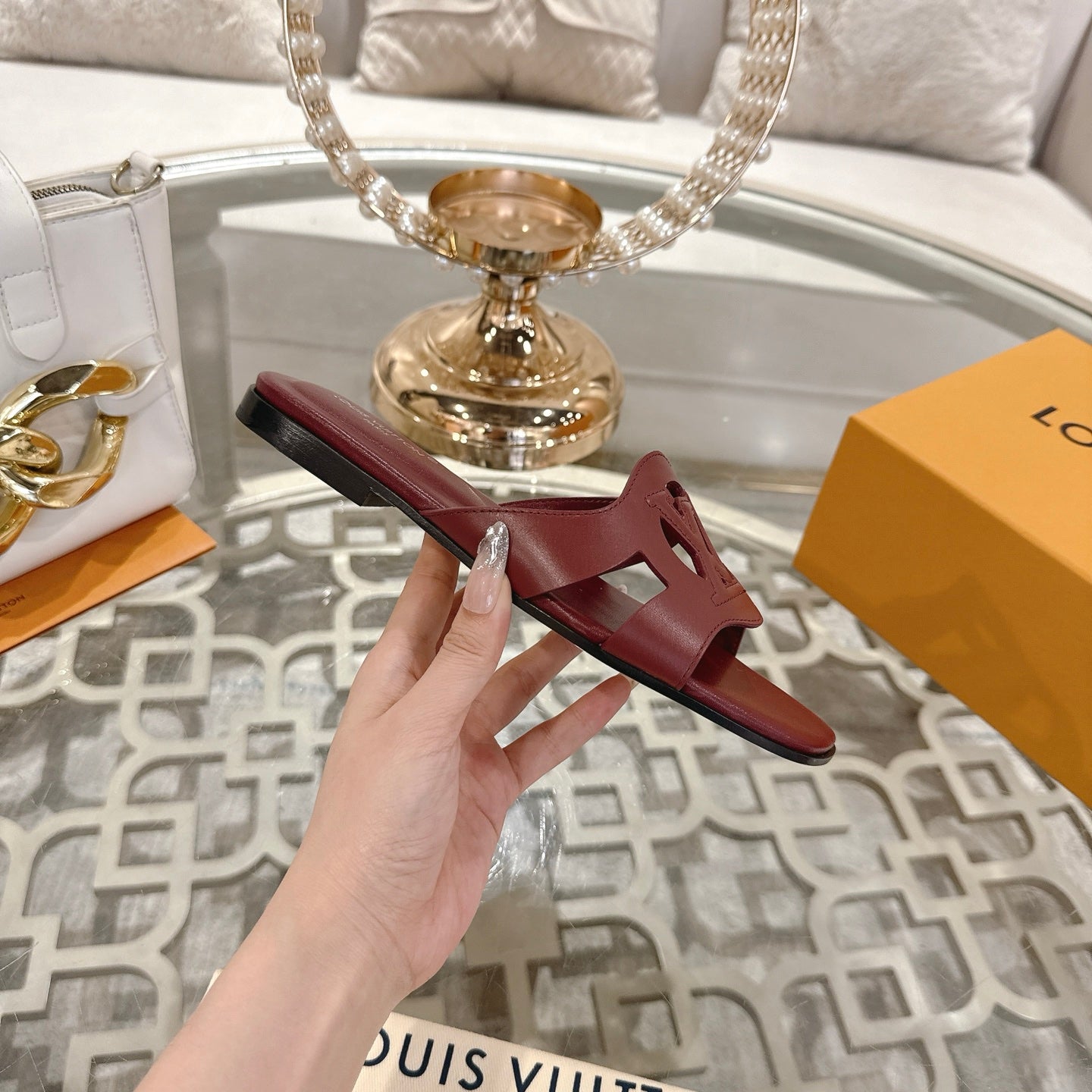 ISOLA FLAT SLIDE IN JAM RED CALFSKIN