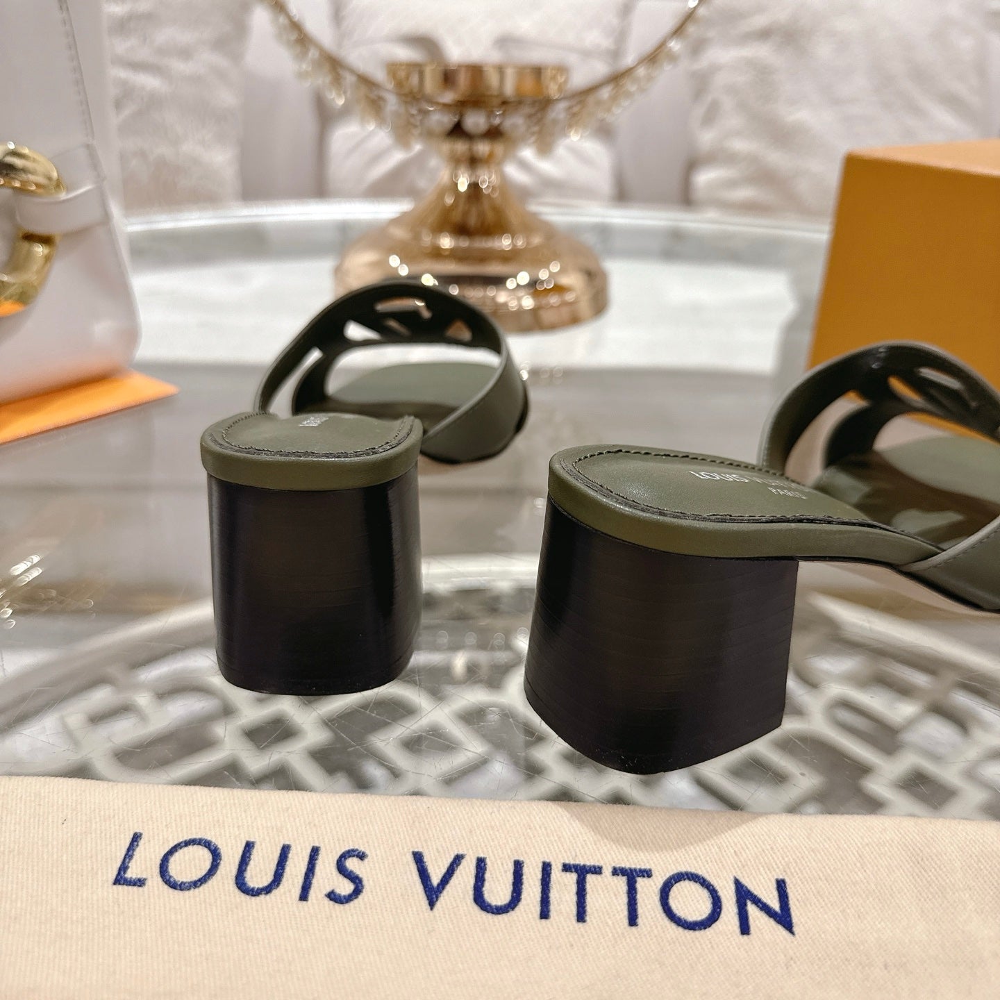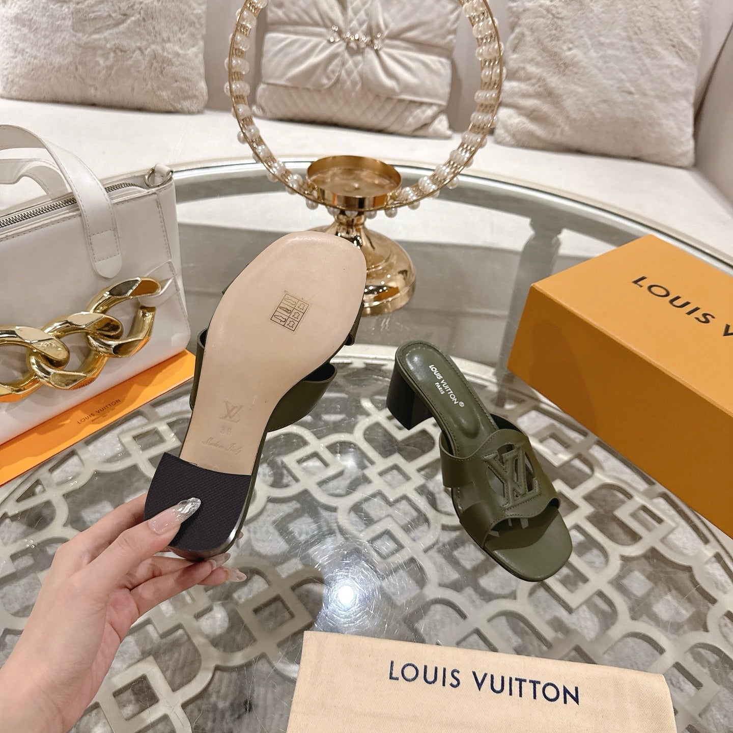 ISOLA HIGH 55 MM MULE IN ARMY GREEN CALFSKIN