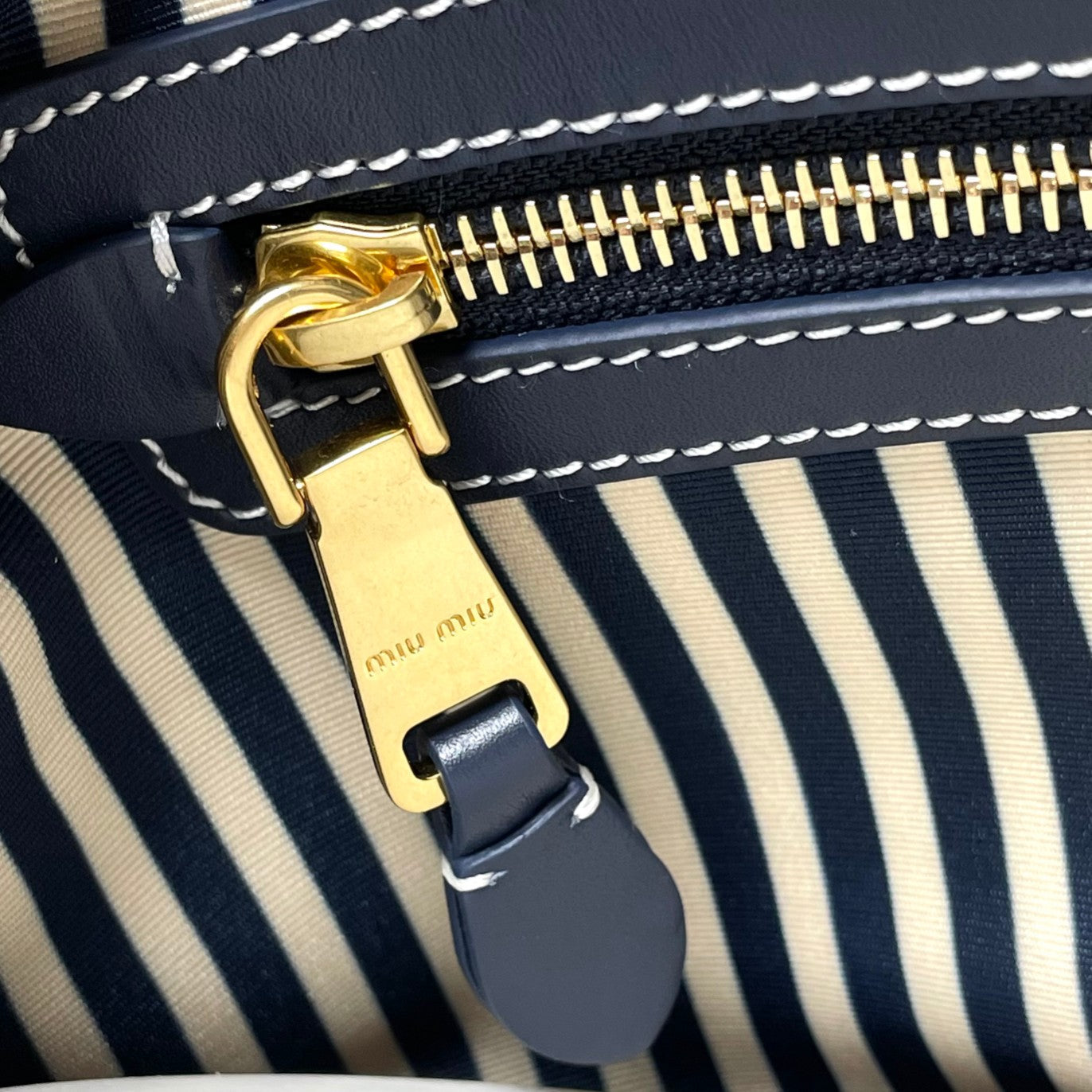 IVY TOTE BAG 40 IN WHITE CANVAS AND NAVY LEATHER TRIM