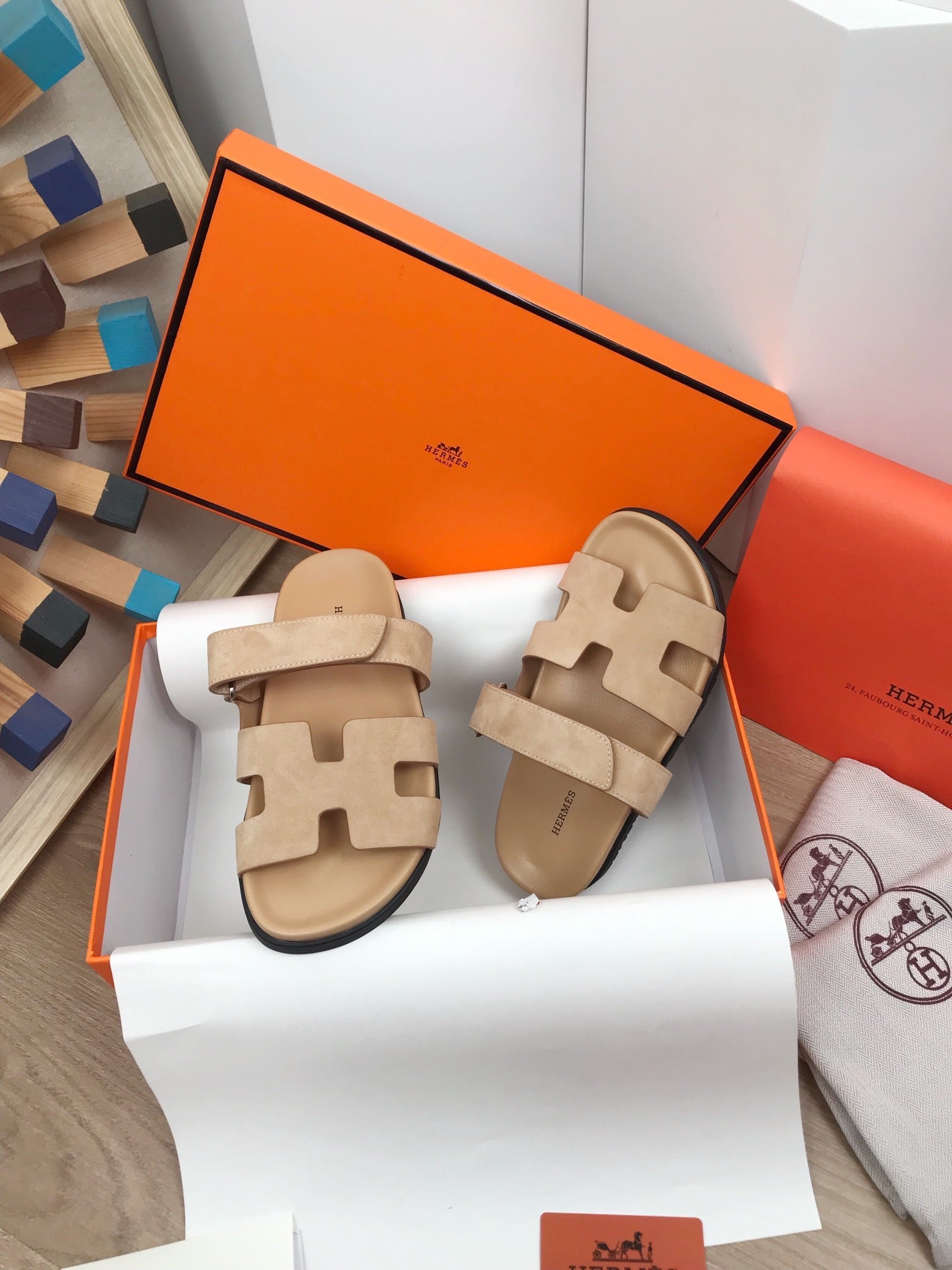 IZMIR SANDALS BEIGE SUEDE WITH SIGNATURE H CUT-OUT DESIGN