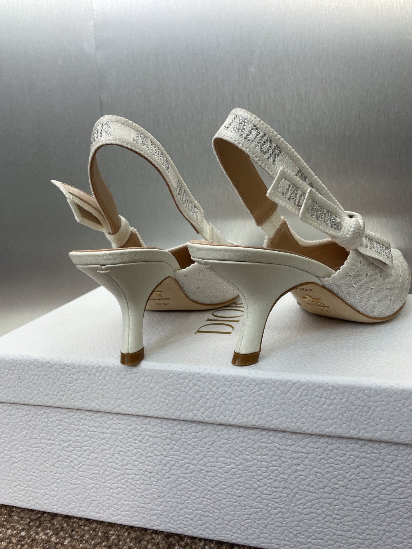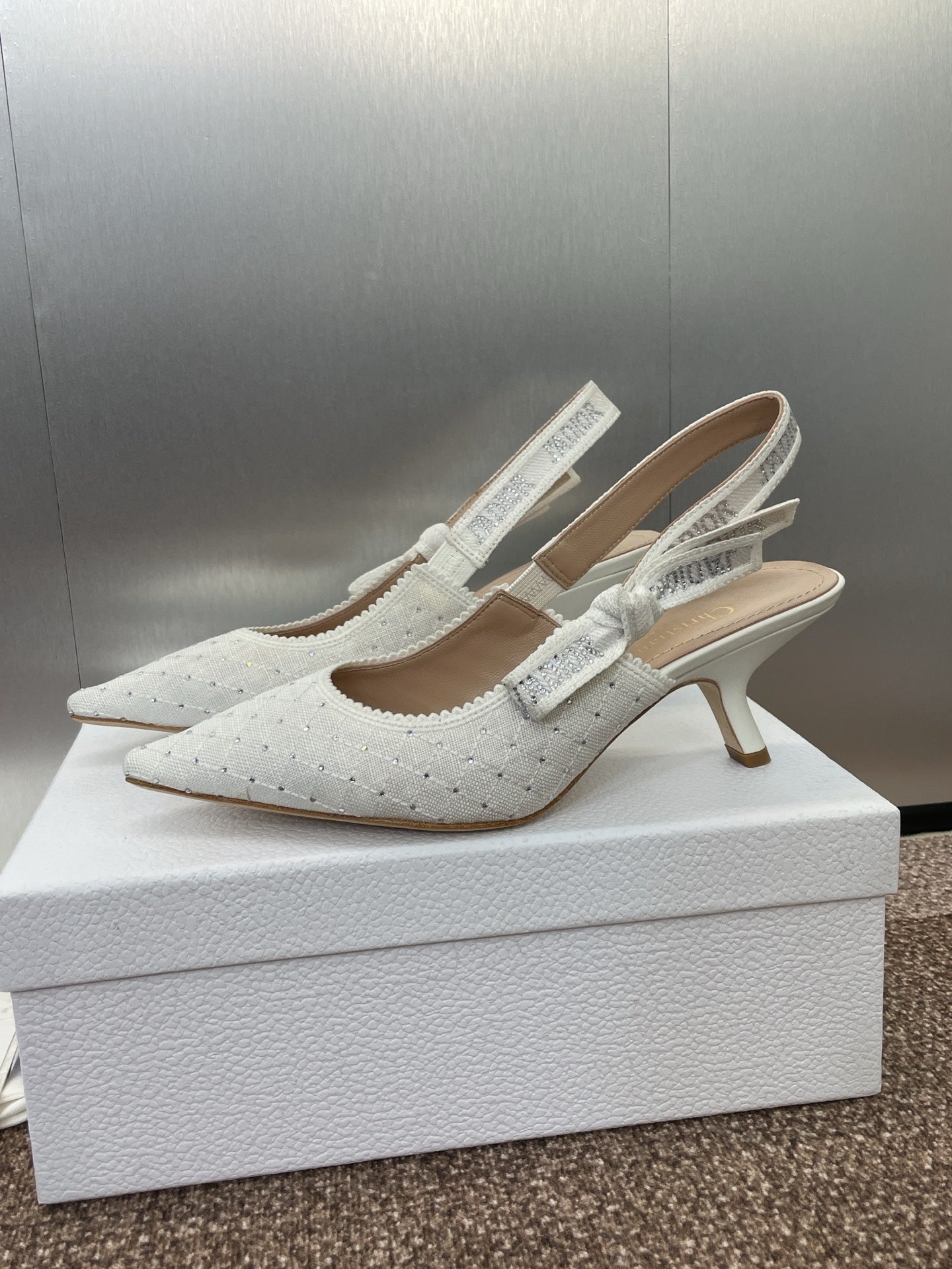J'ADIOR SLINGBACK 25S PUMP 65MM IN WHITE FABRIC EMBOSSED CRYSTAL