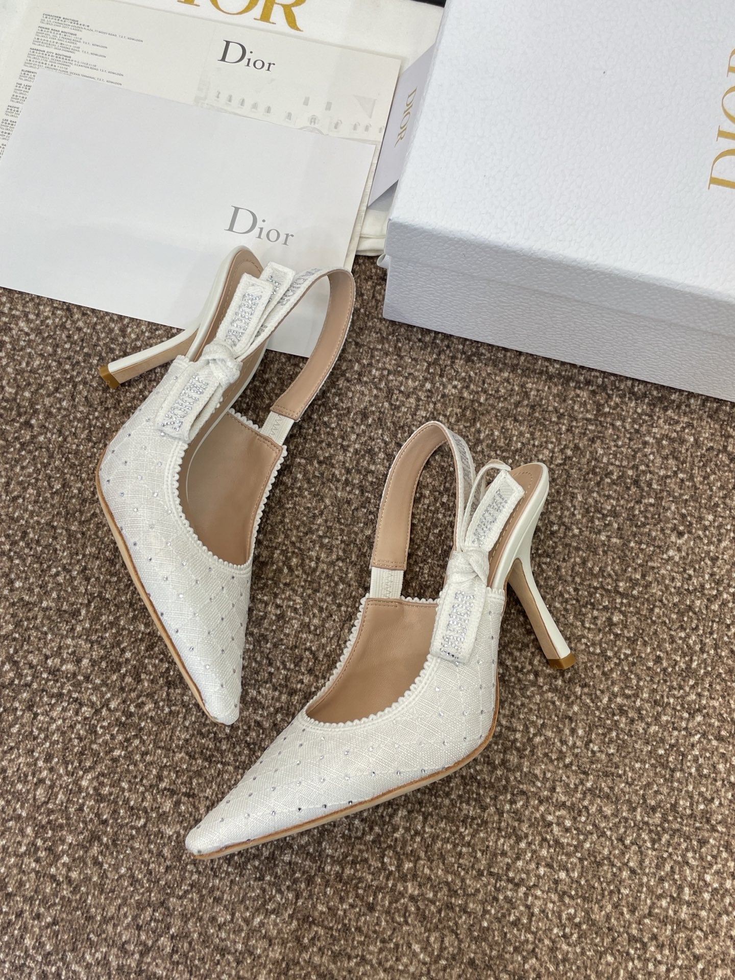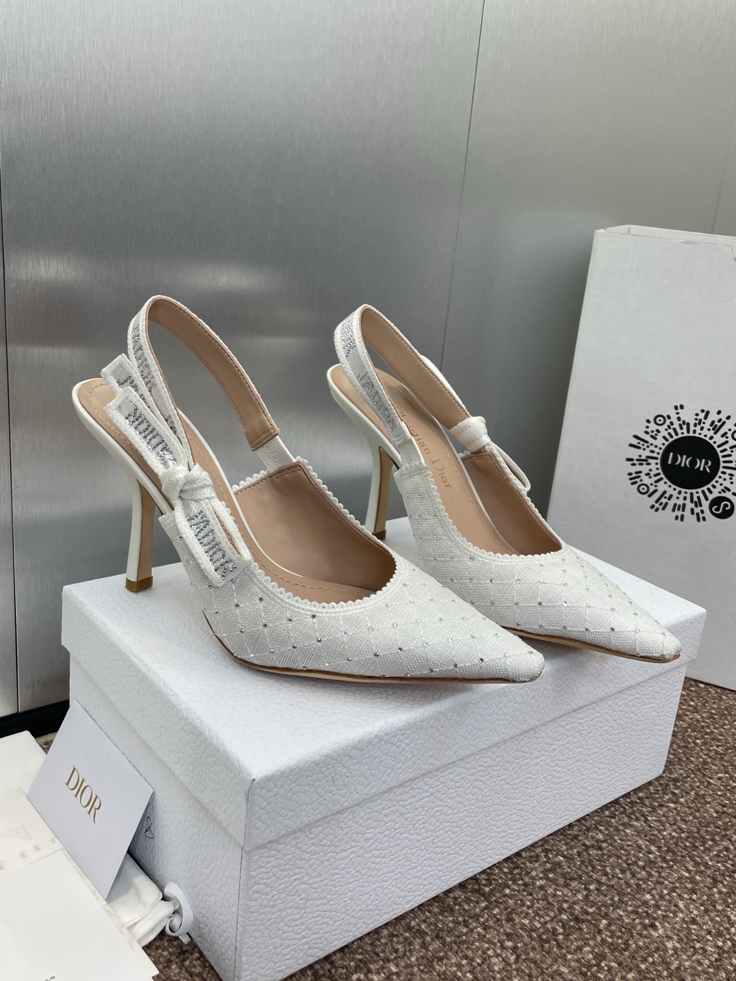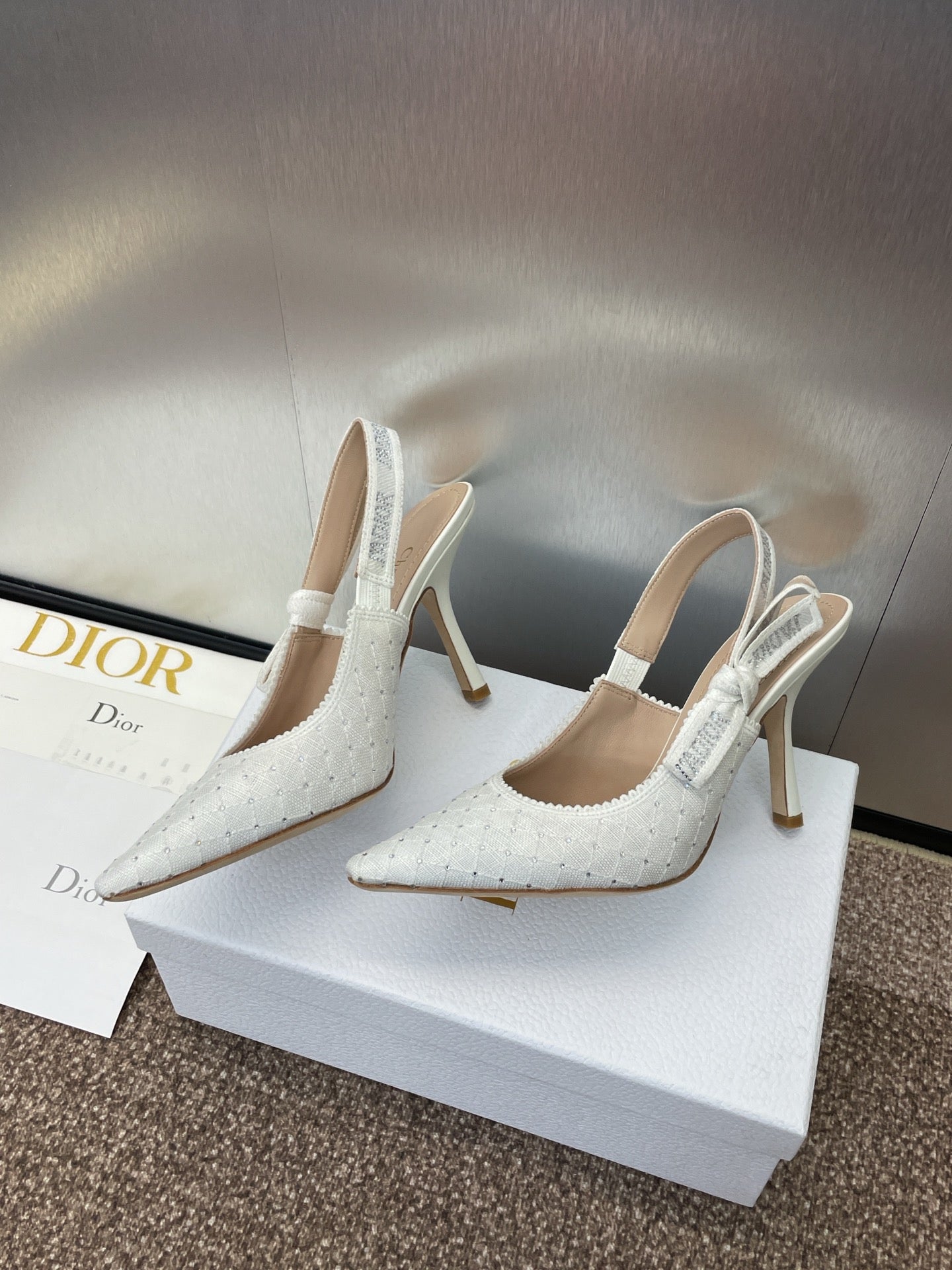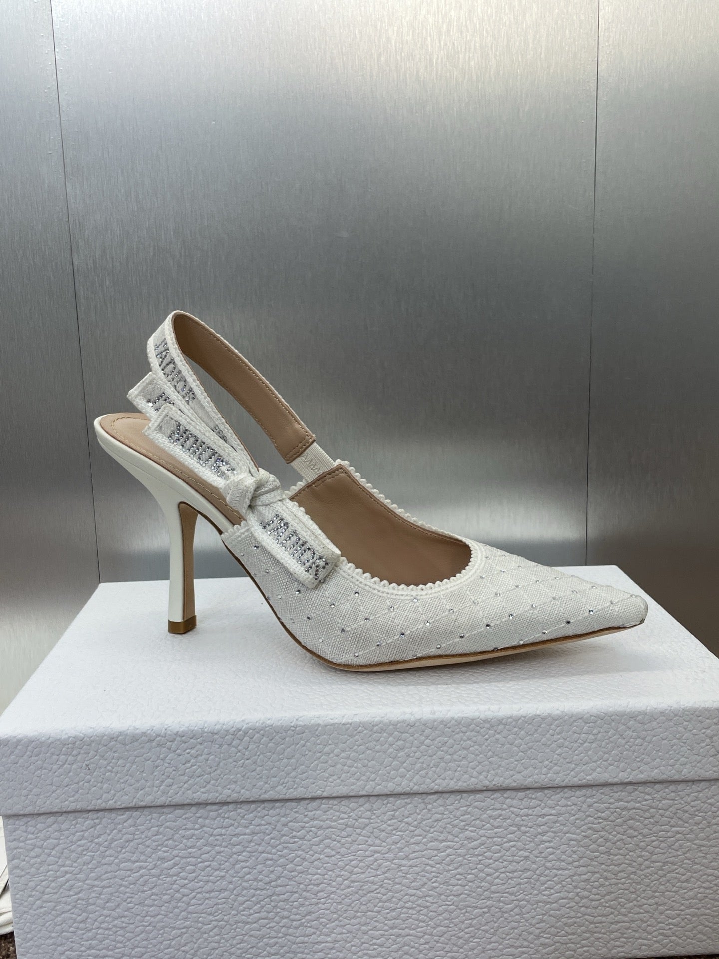 J'ADIOR SLINGBACK 25S PUMP 95MM IN WHITE FABRIC EMBOSSED CRYSTAL