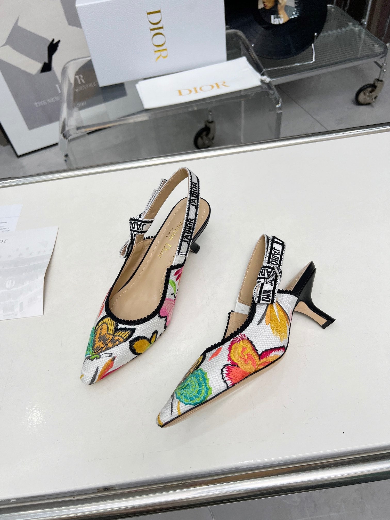 J'ADIOR SLINGBACK PUMP COLORFUL NATURAL RAFFIA AND EMBROIDERED COTTON 65 MM 130844