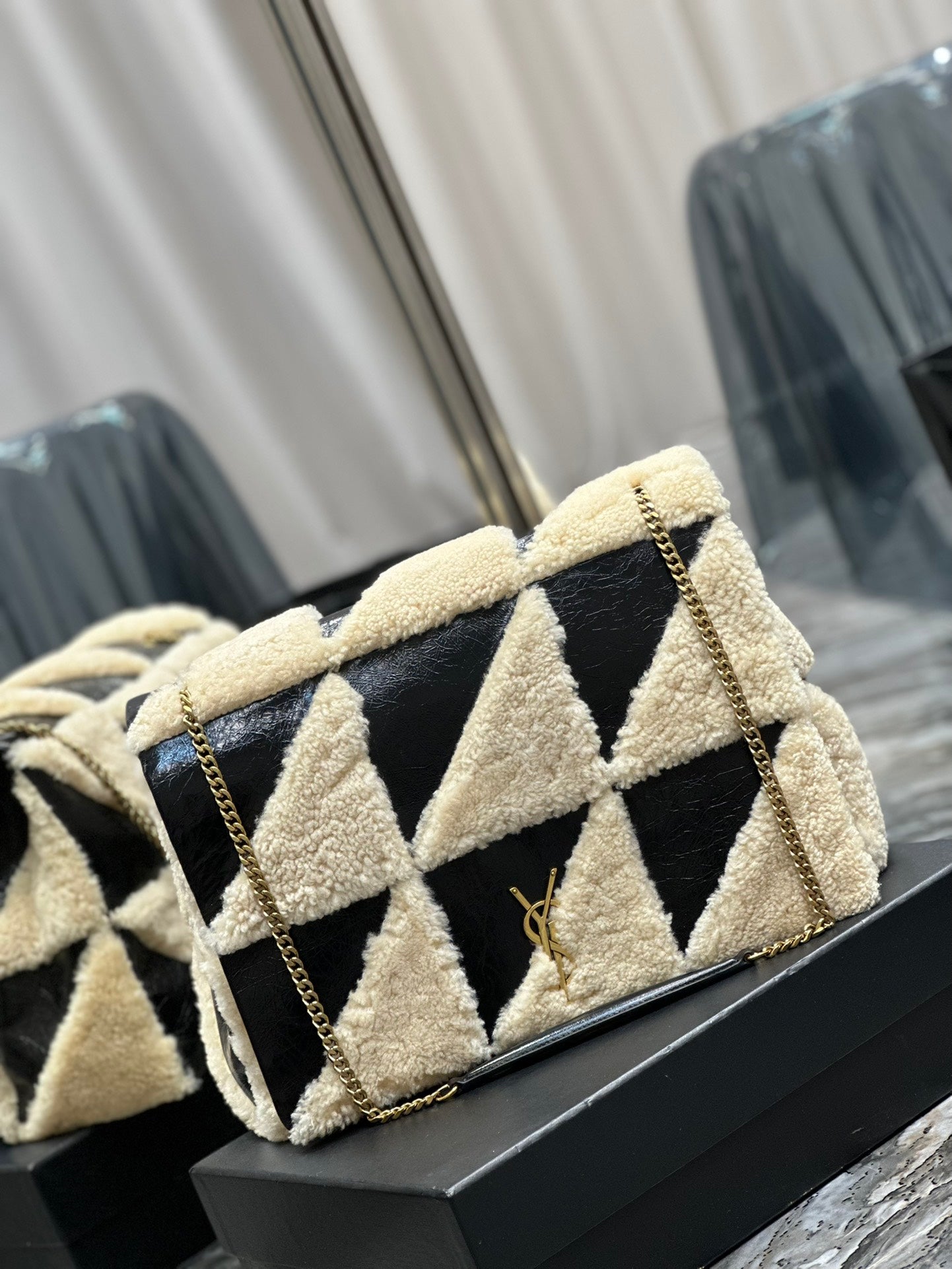 JAMIE 4.3 LARGE BAG 38 IN BLACK CALFSKIN MIX BEIGE SHEARLING GOLD HARDWARE