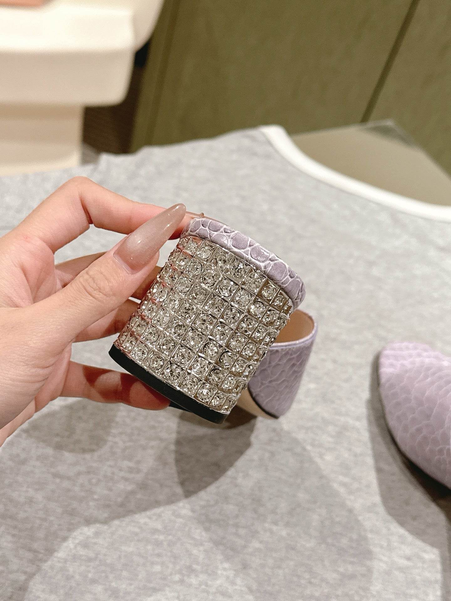 JEWELLED HEEL 55 MULE SANDALS IN PASTEL PURPLE CALFSKIN