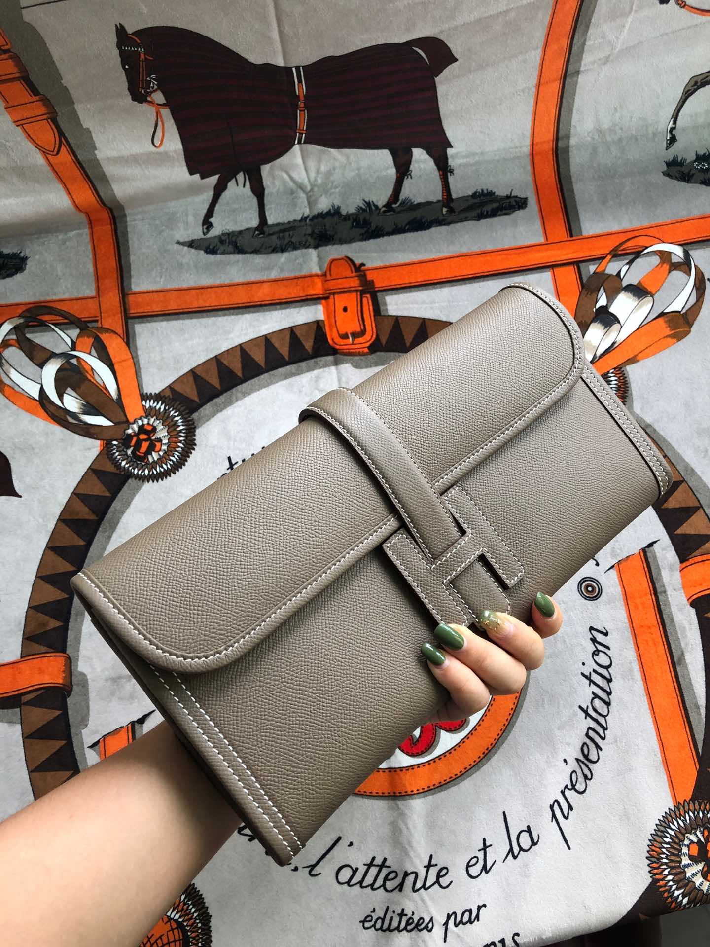 JIGE ELAN 29 CLUTCH IN MEDIUM BROWN CALFSKIN