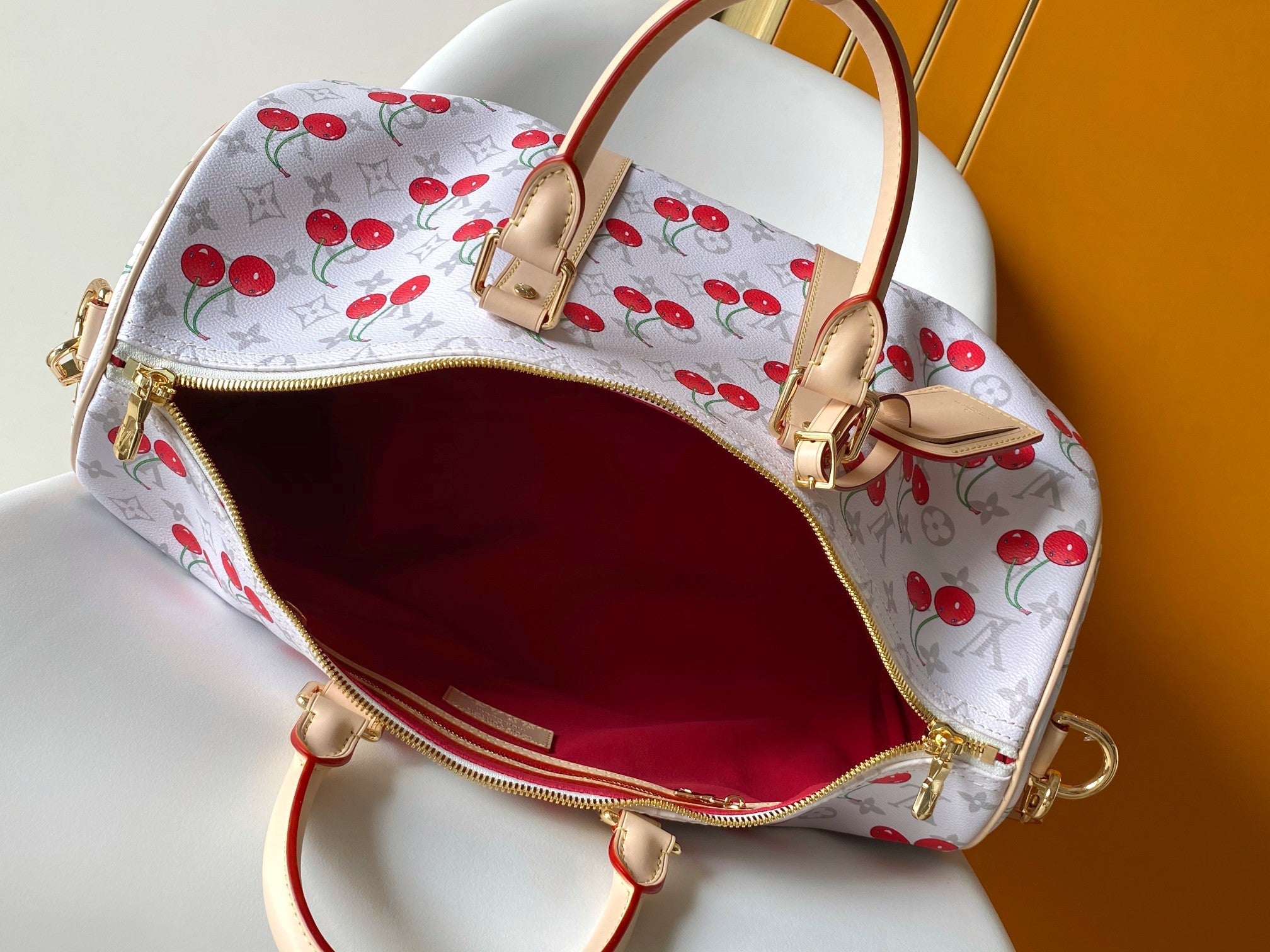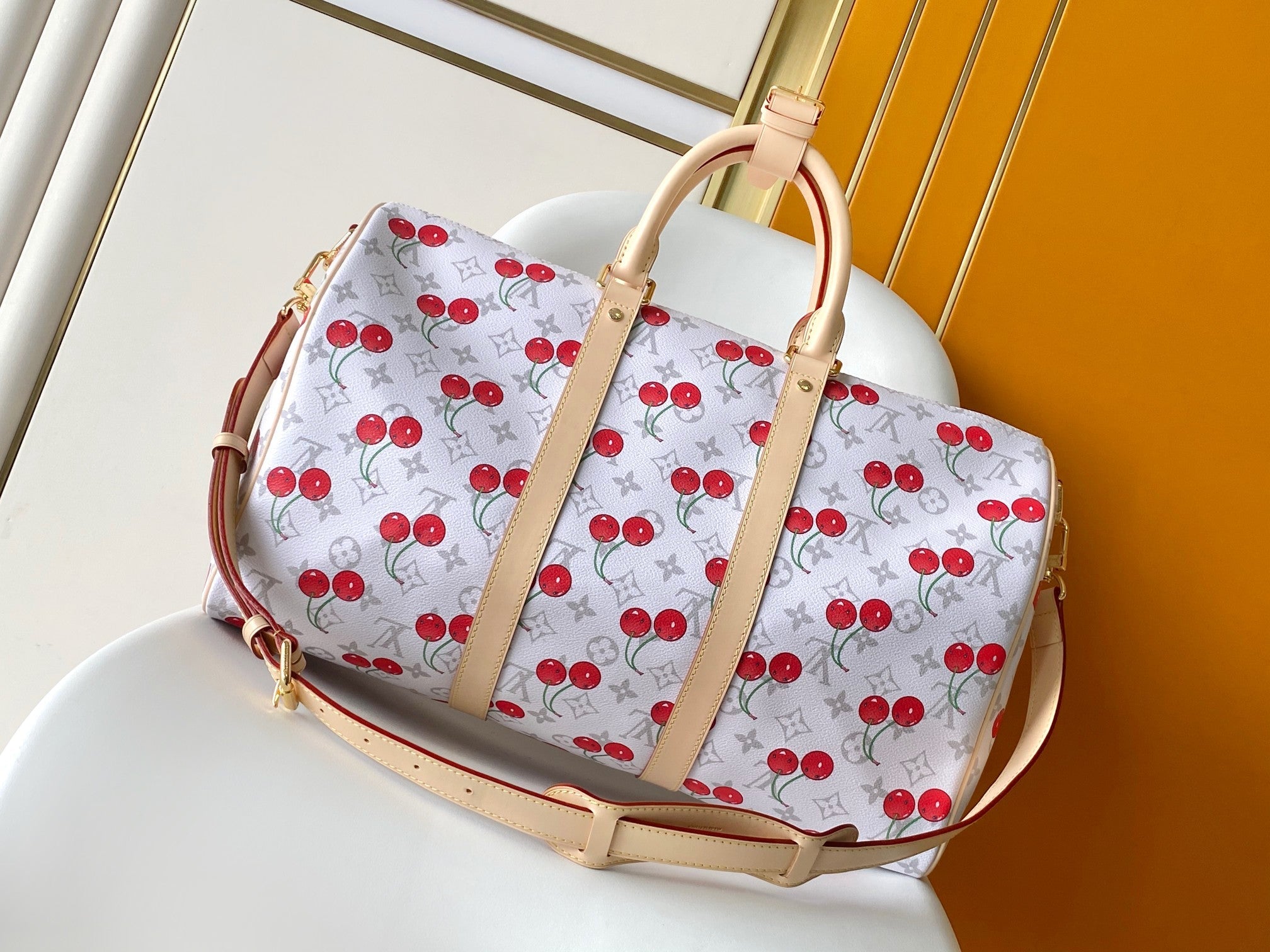 KEEPALL BANDOULIÈRE 45 IN WHITE AND RED CALFSKIN