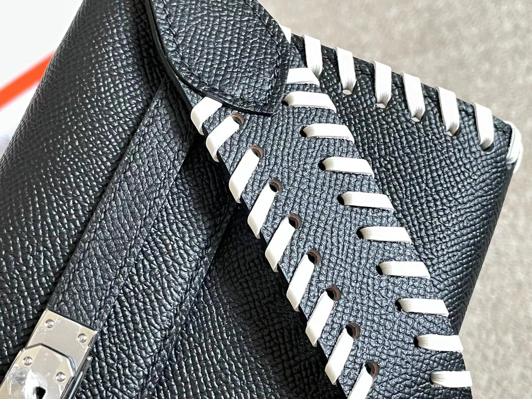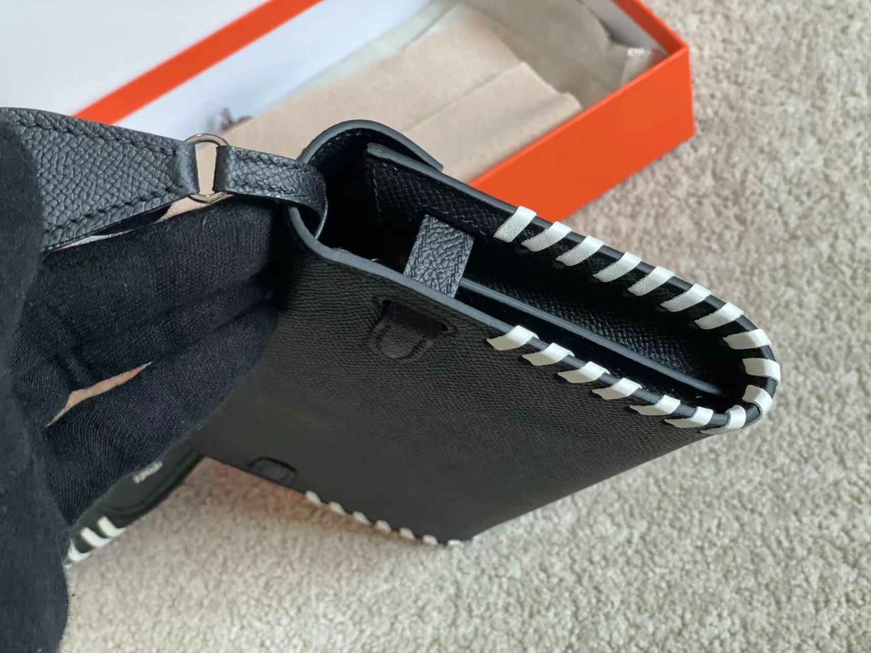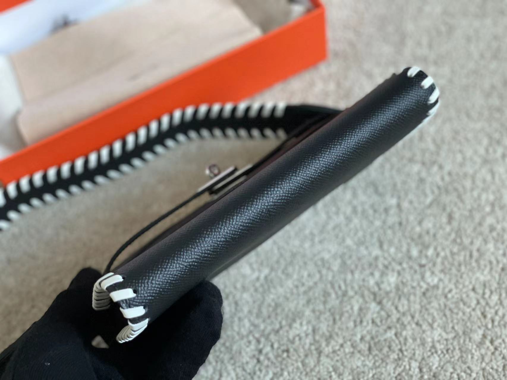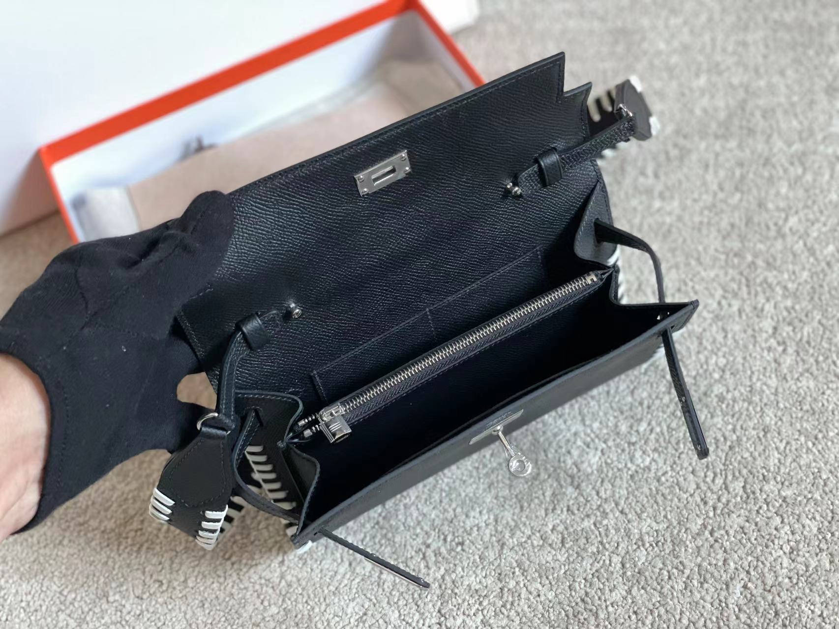 KELLY CLASSIQUE TO GO WALLET 20 IN BLACK CALFSKIN WITH SILVER HARDWARE