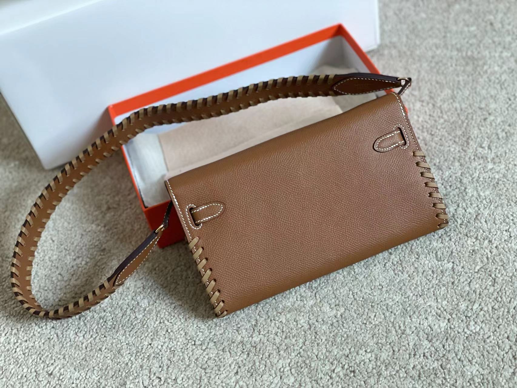 KELLY CLASSIQUE TO GO WALLET 20 IN CHOCOLATE BROWN CALFSKIN WITH GOLD HARDWARE
