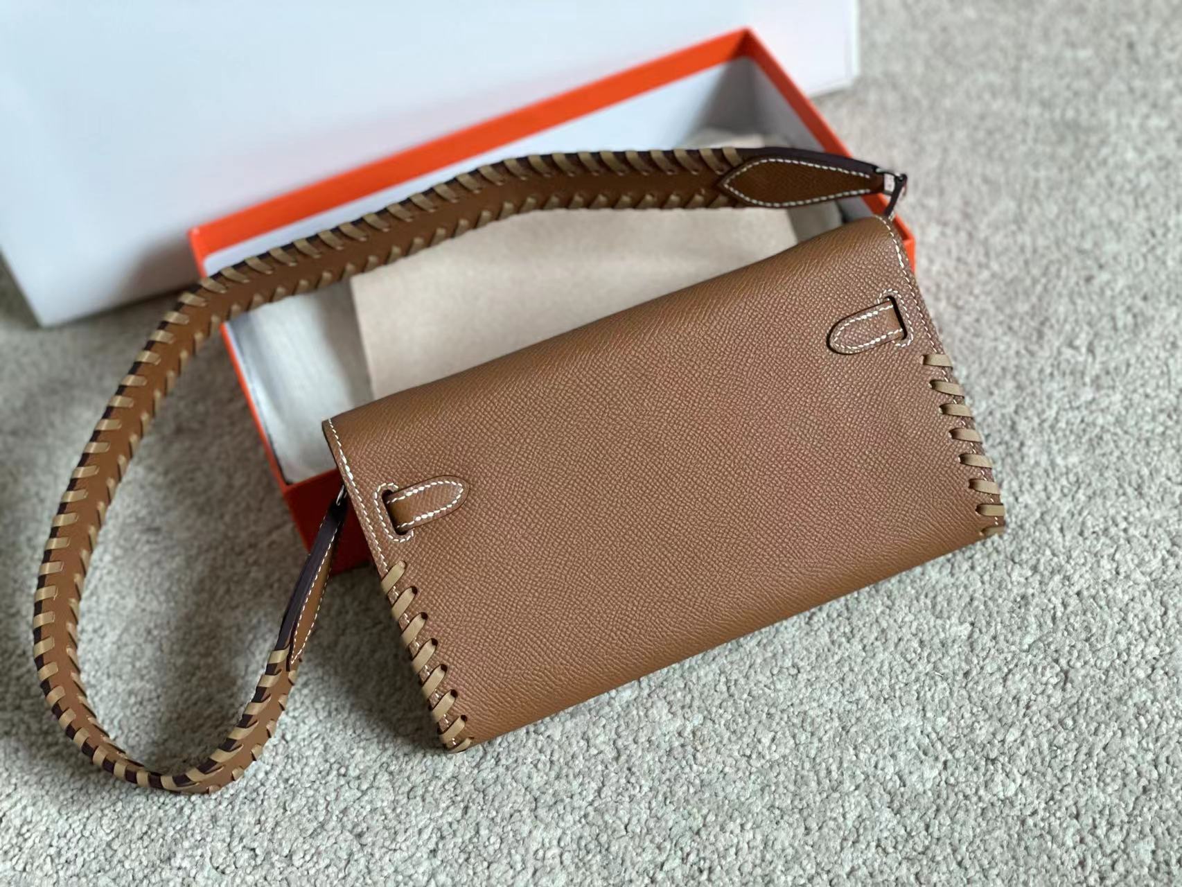 KELLY CLASSIQUE TO GO WALLET 20 IN CHOCOLATE BROWN CALFSKIN WITH SILVER HARDWARE