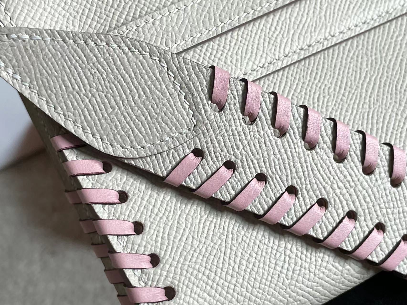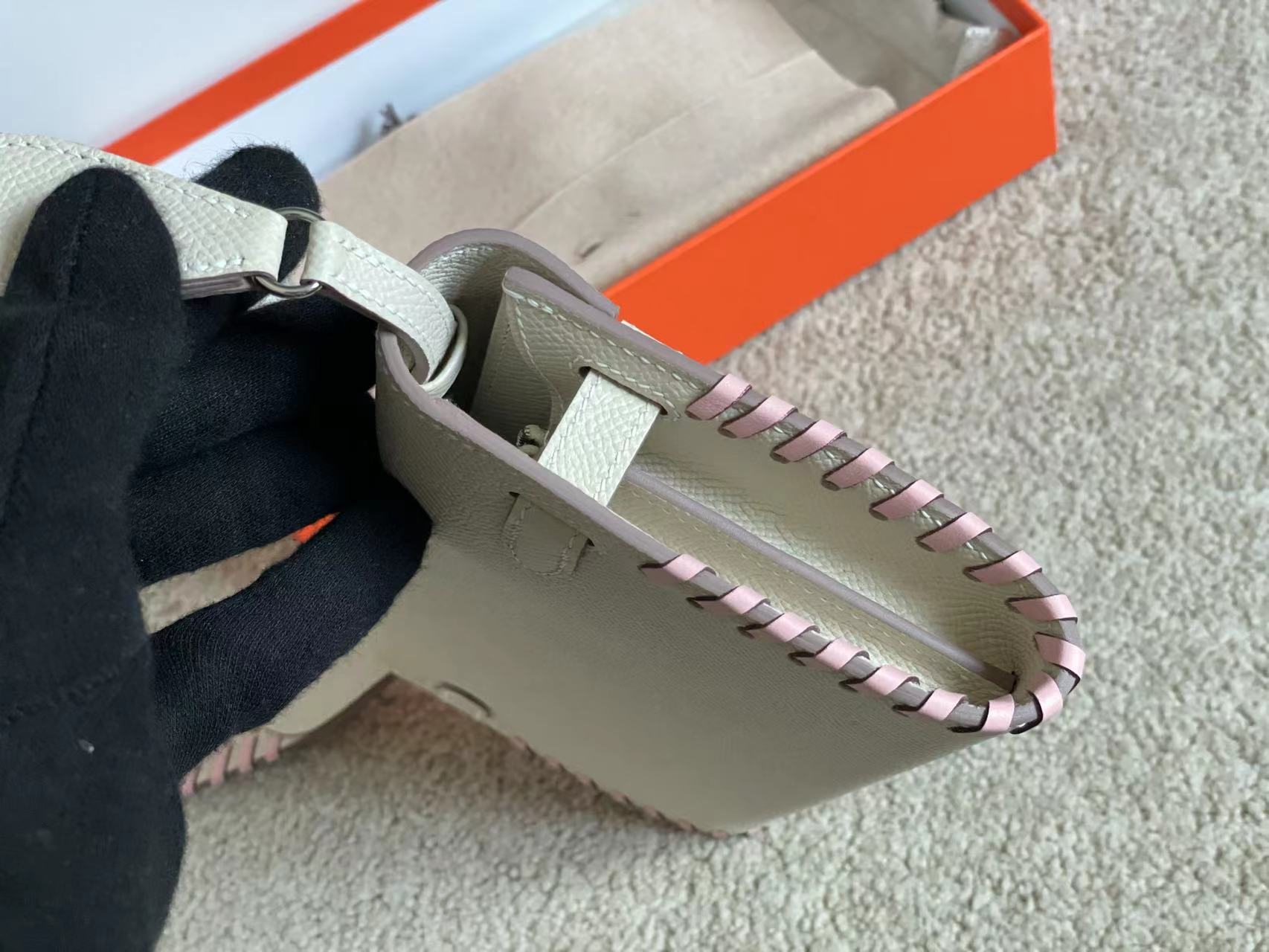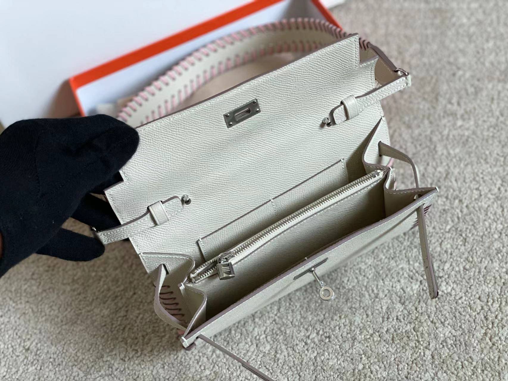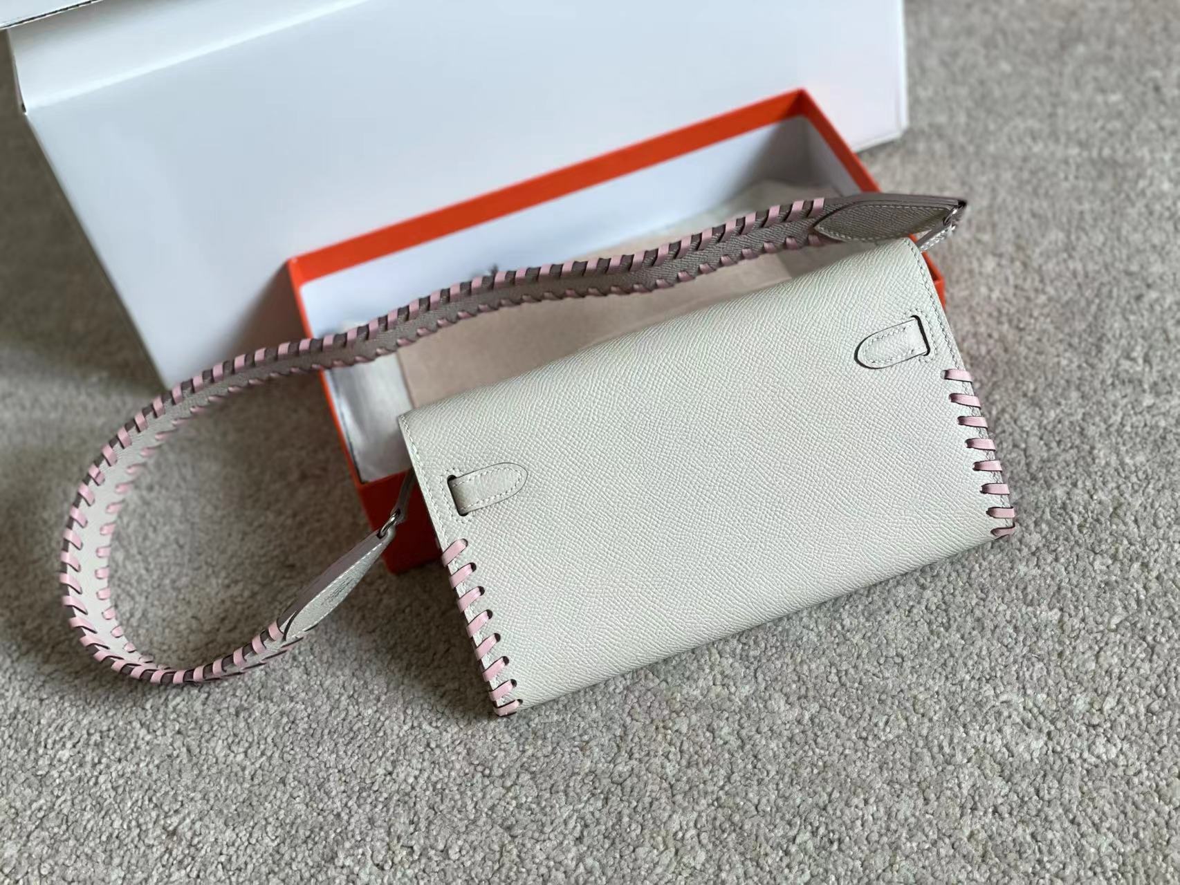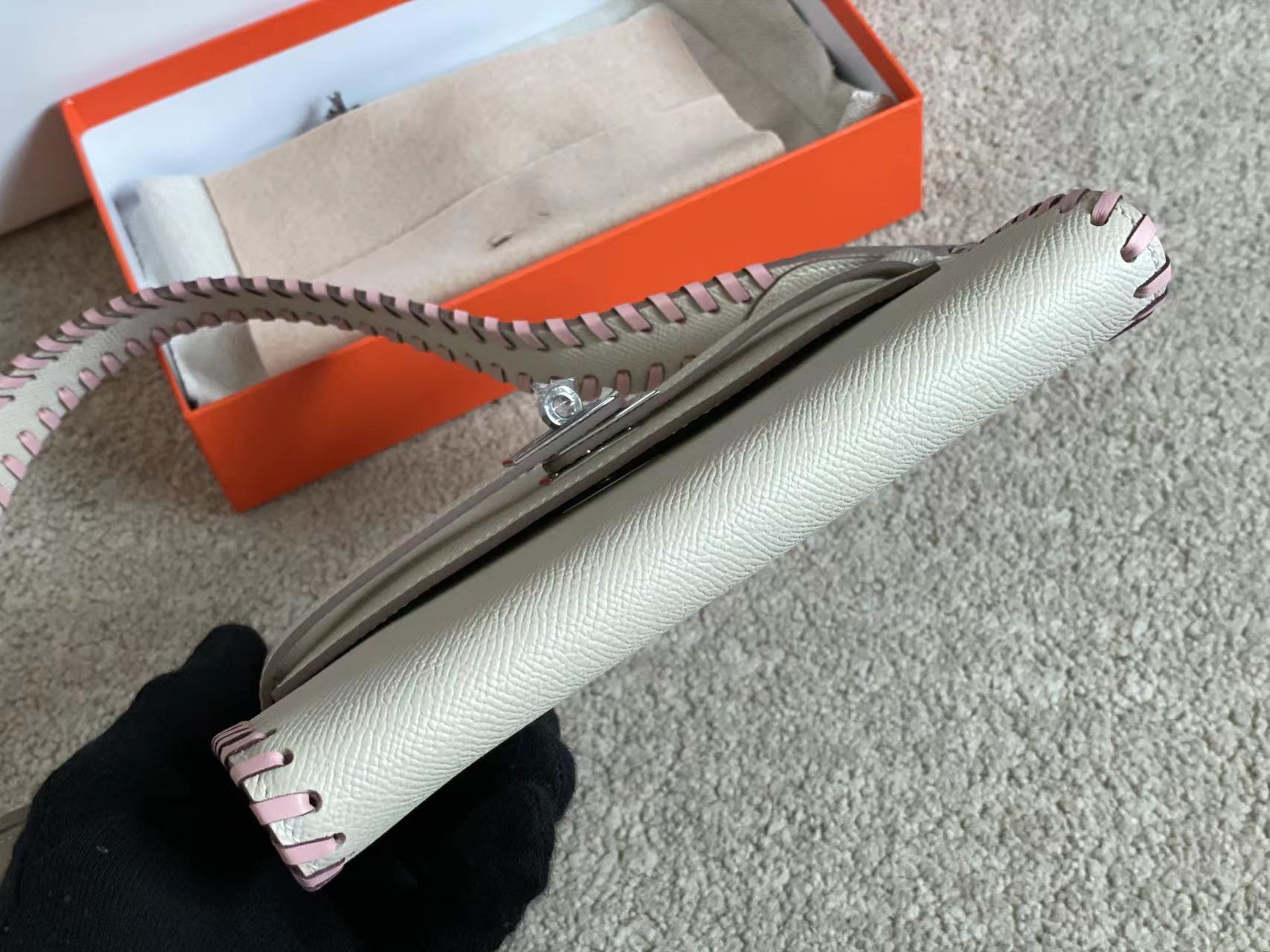 KELLY CLASSIQUE TO GO WALLET 20 IN PALE GRAY CALFSKIN WITH SILVER HARDWARE