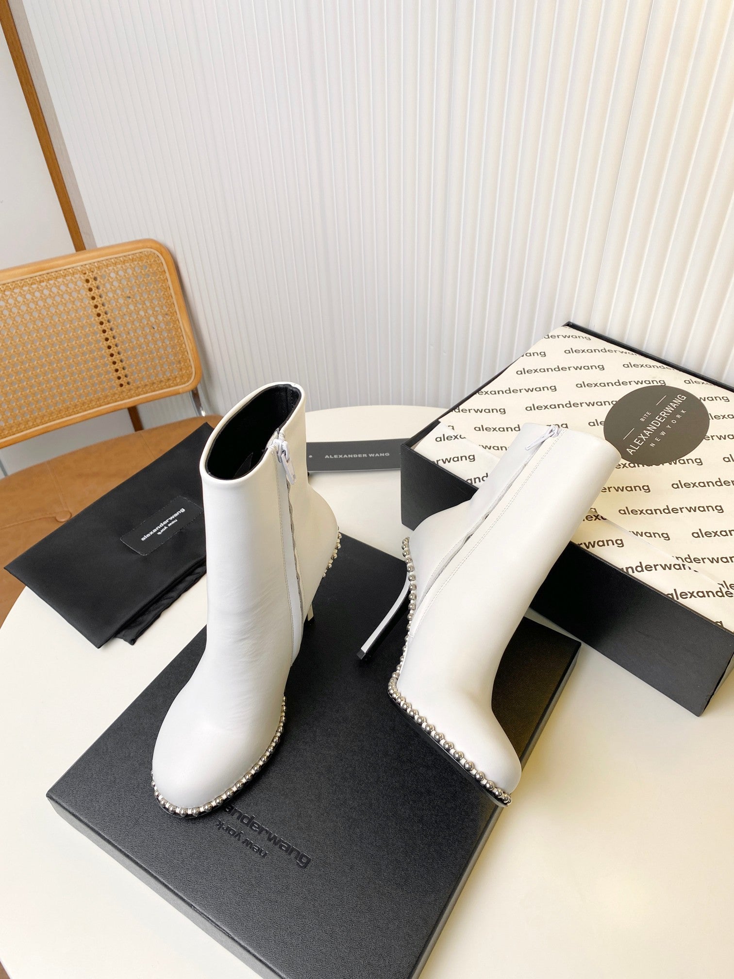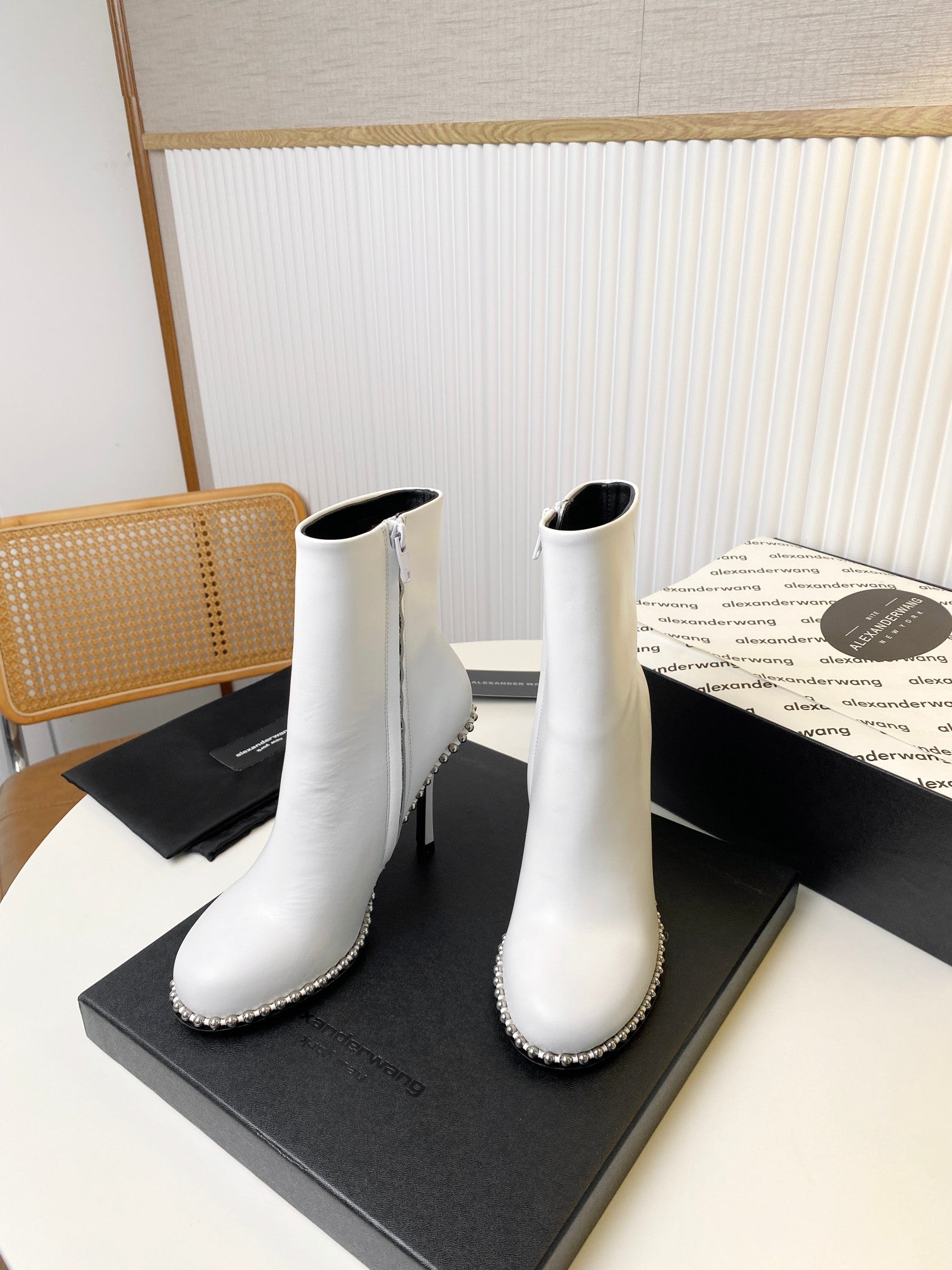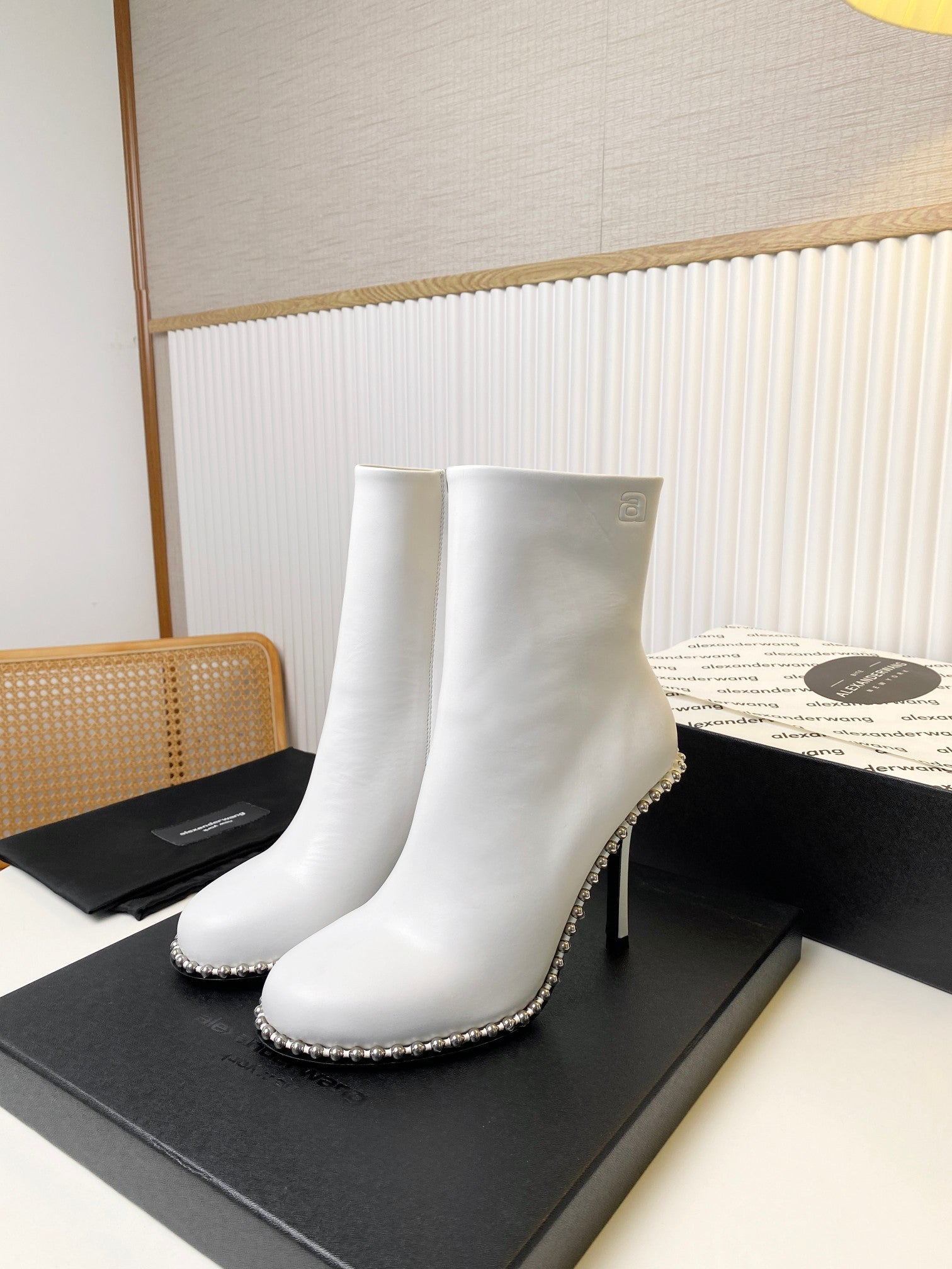 KIRA ANKLE BOOTS 10 CM IN WHITE CALFSKIN
