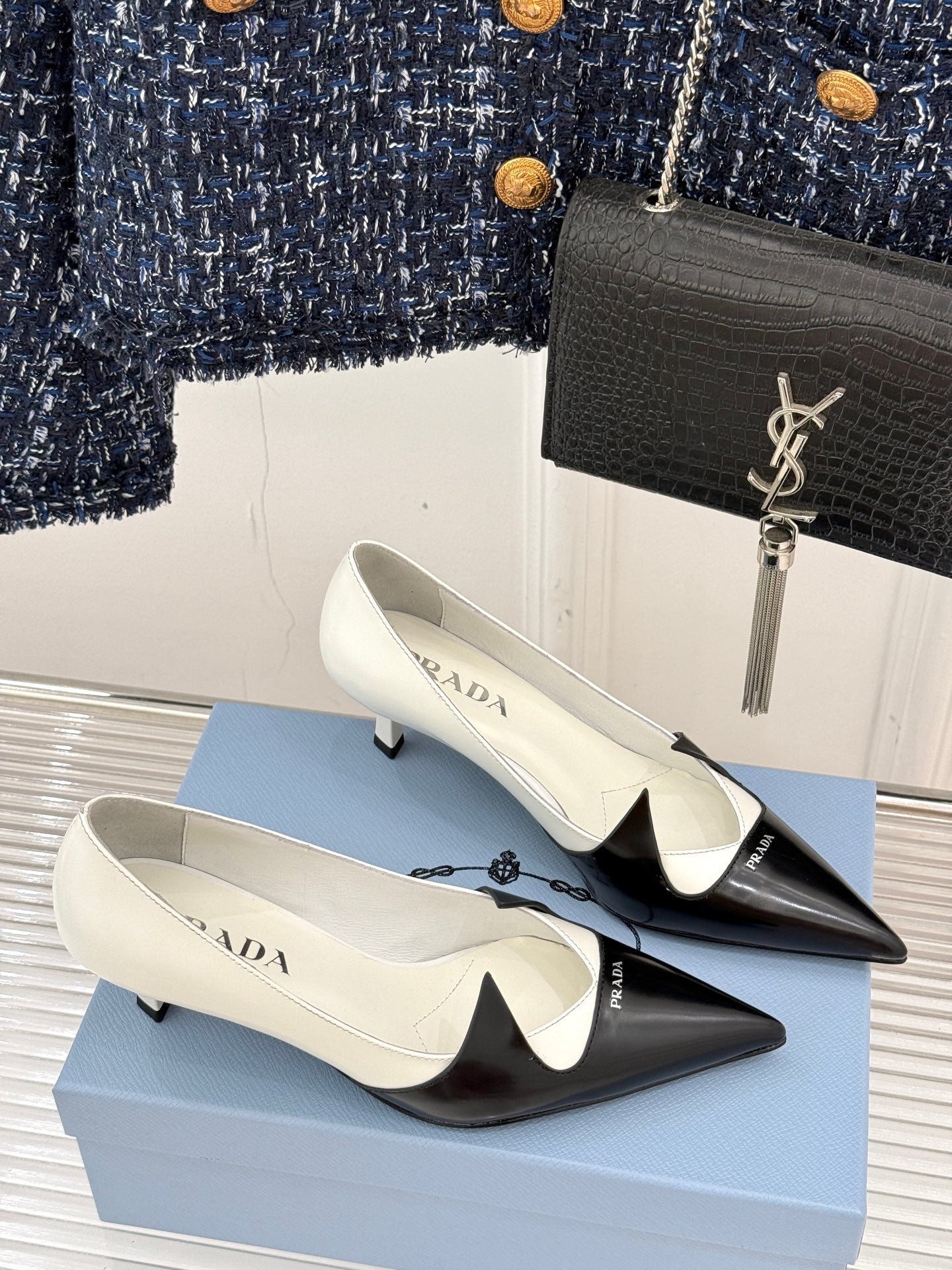 KITTEN HEEL PUMPS IN BLACK MIX WHITE CALFSKIN