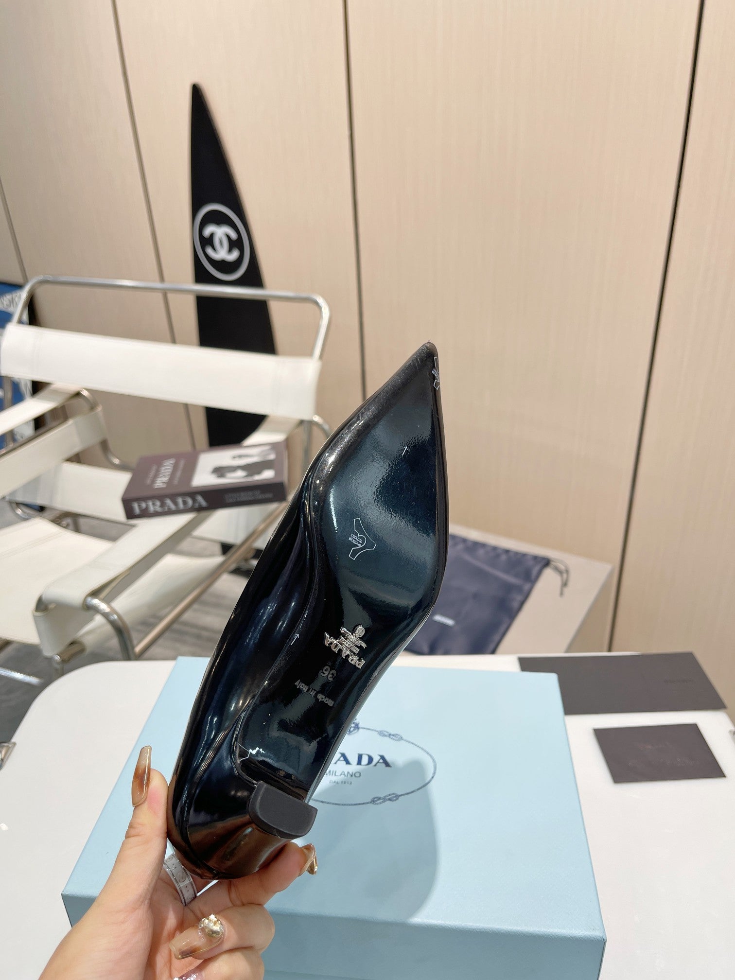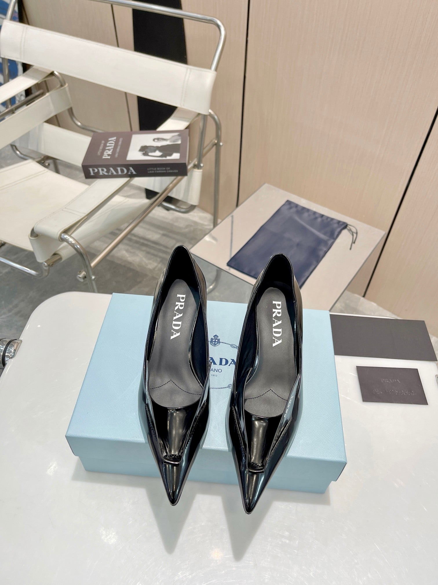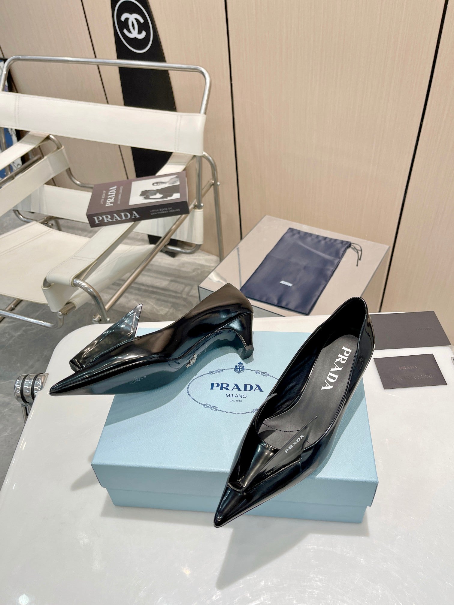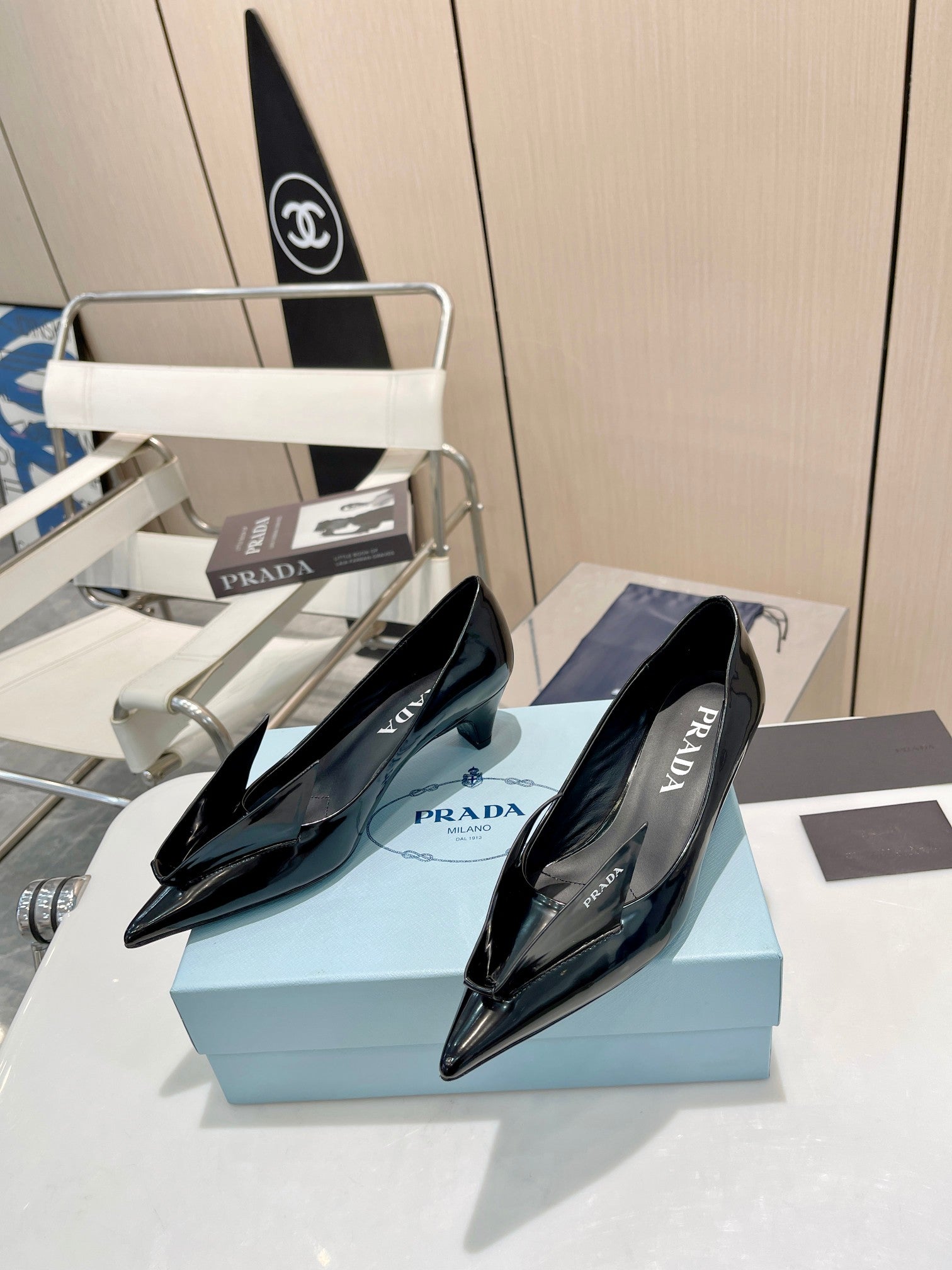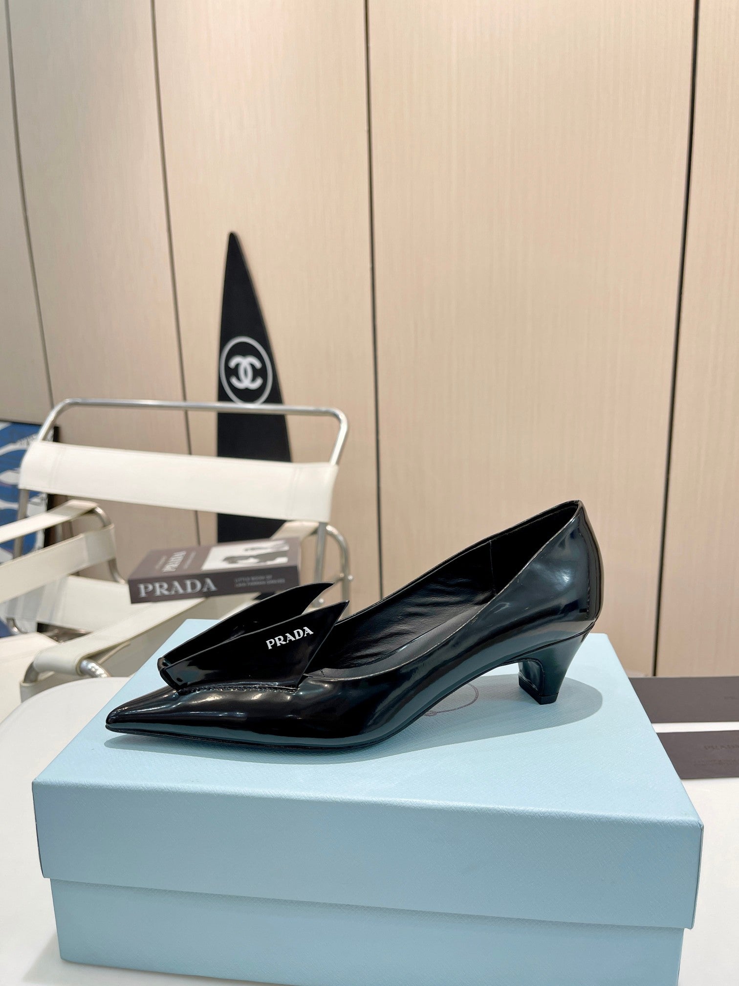 KITTEN HEEL PUMPS WITH CREATIVE SHAPE IN BLACK GLOSSY LAMBSKIN
