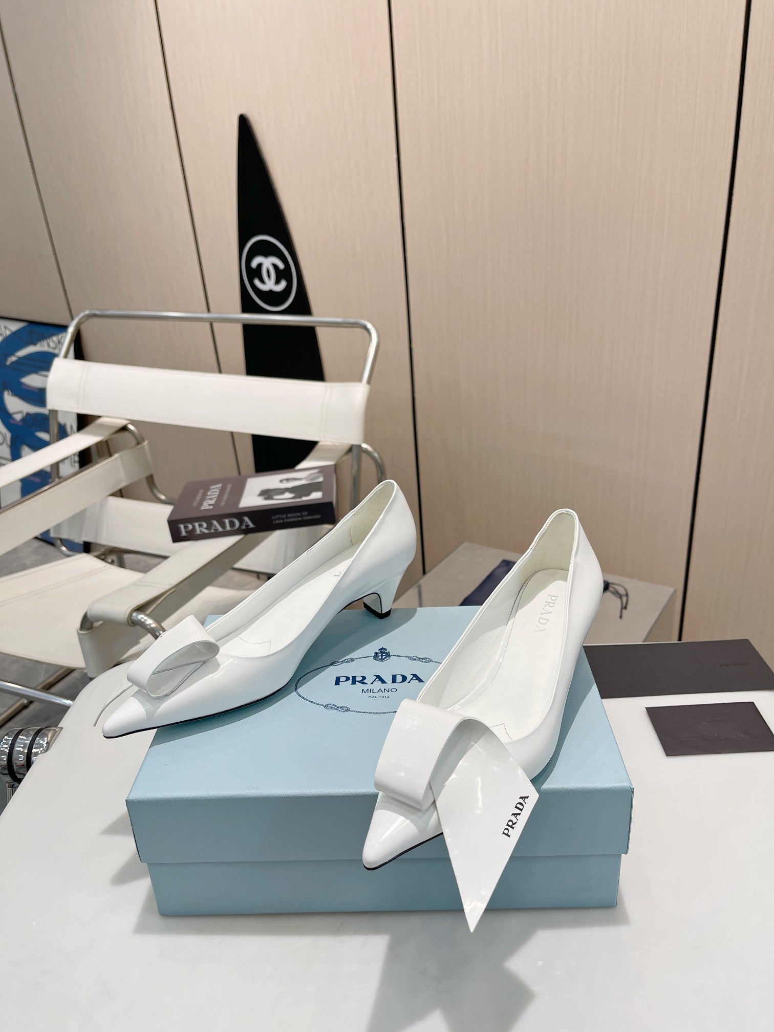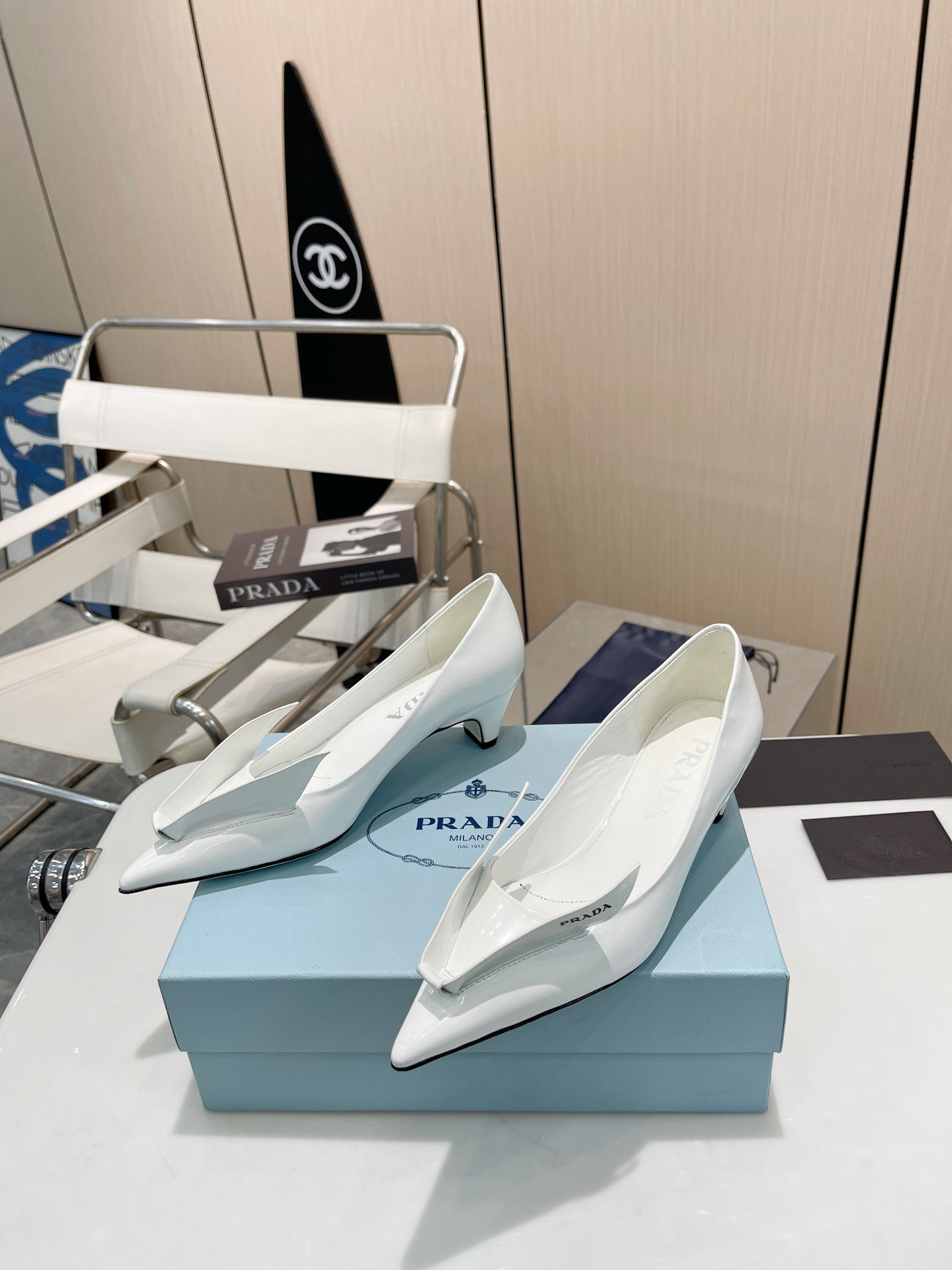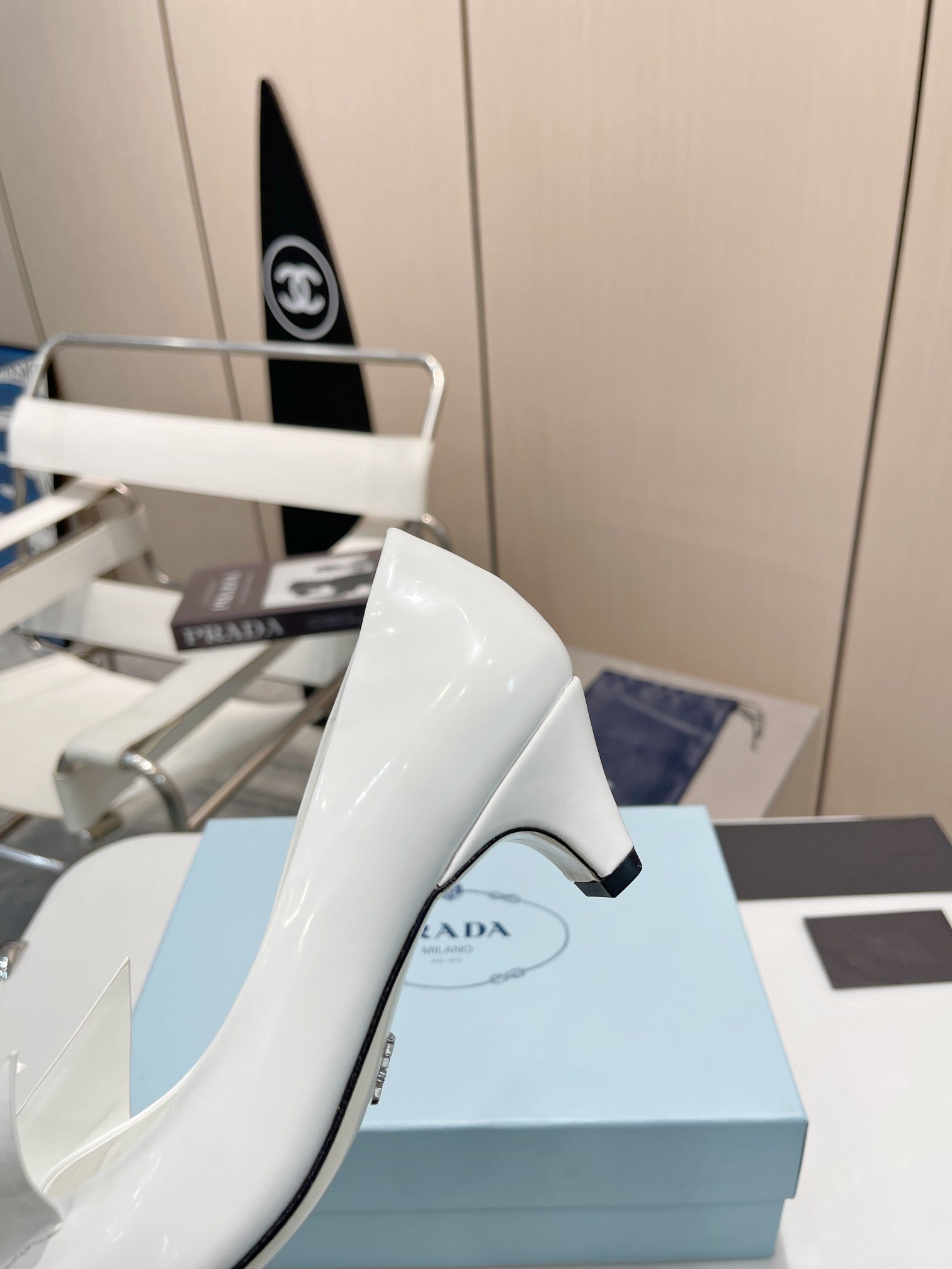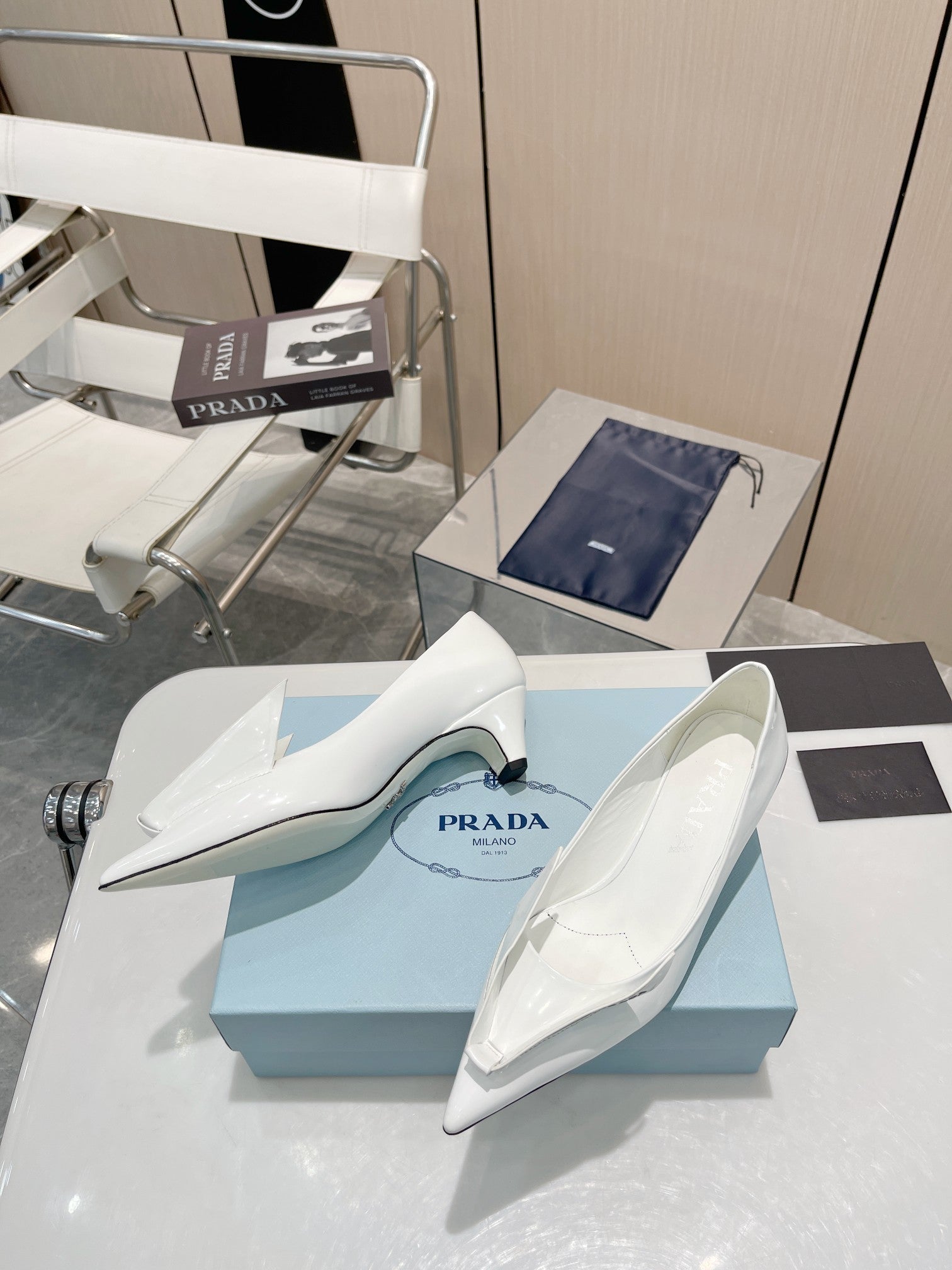 KITTEN HEEL PUMPS WITH CREATIVE SHAPE IN WHITE GLOSSY LAMBSKIN