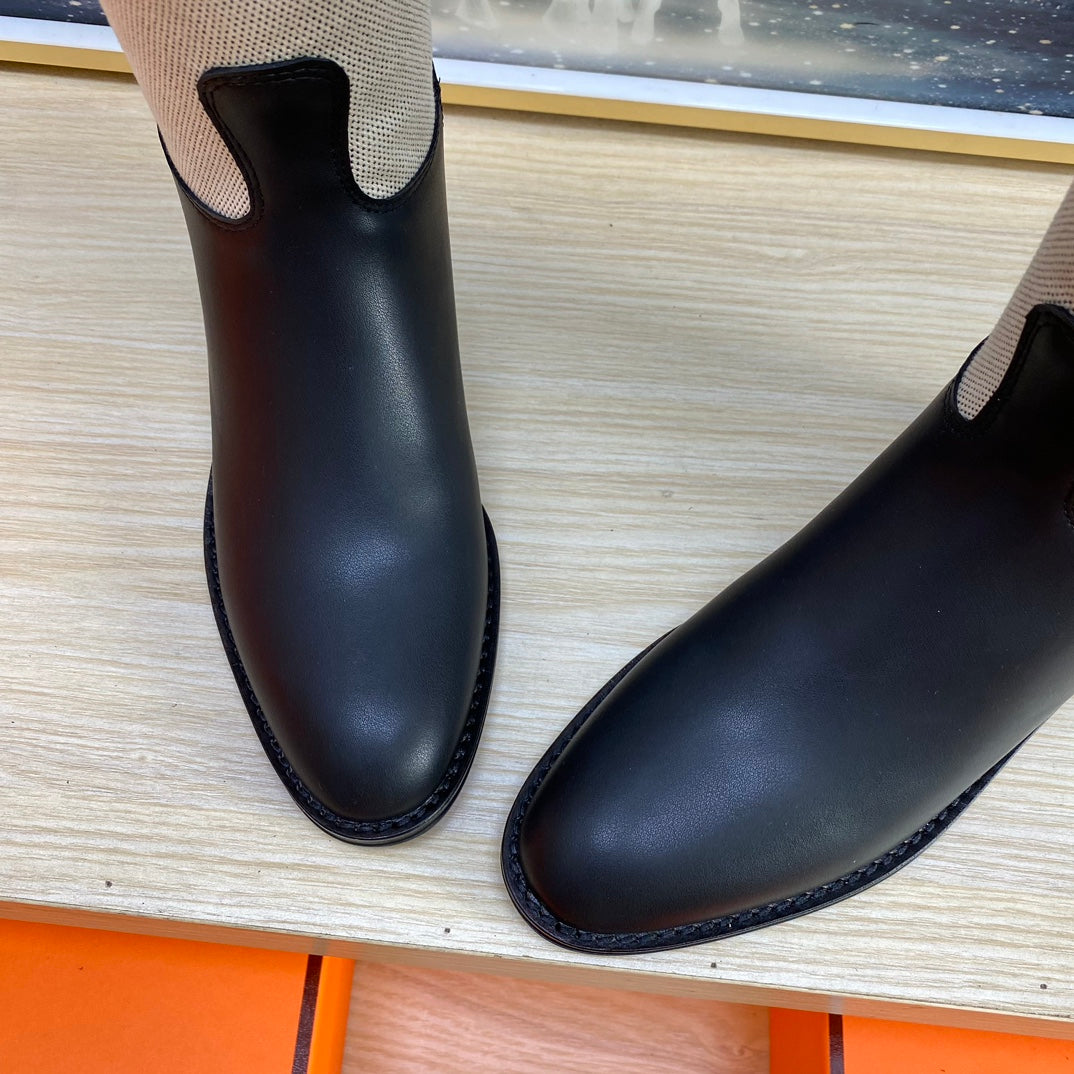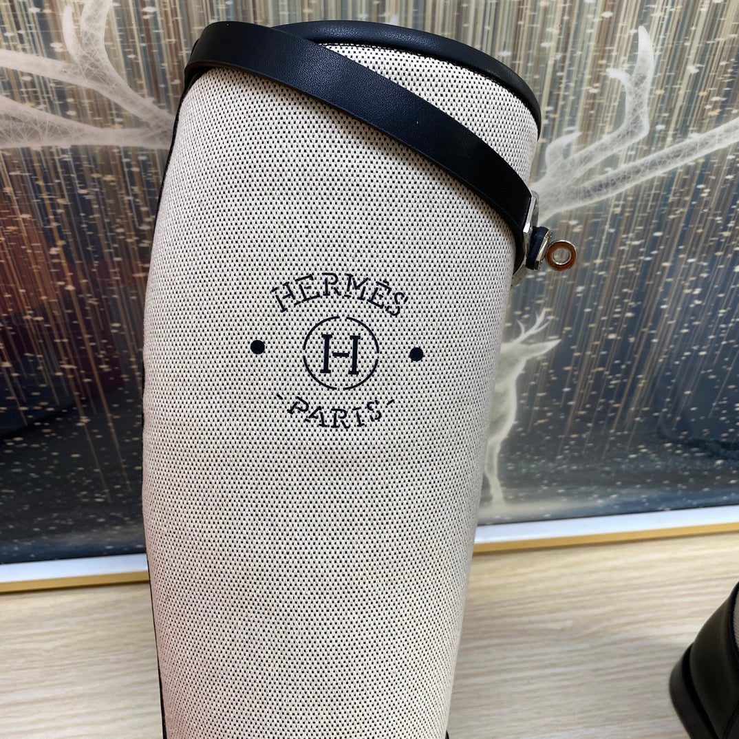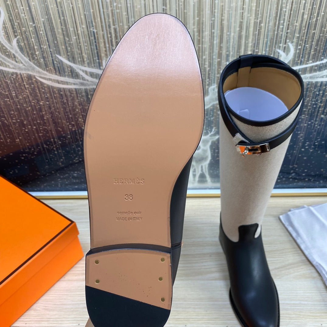 KNEE HIGH BOOTS IN BLACK CALFSKIN AND WHITE FABRIC