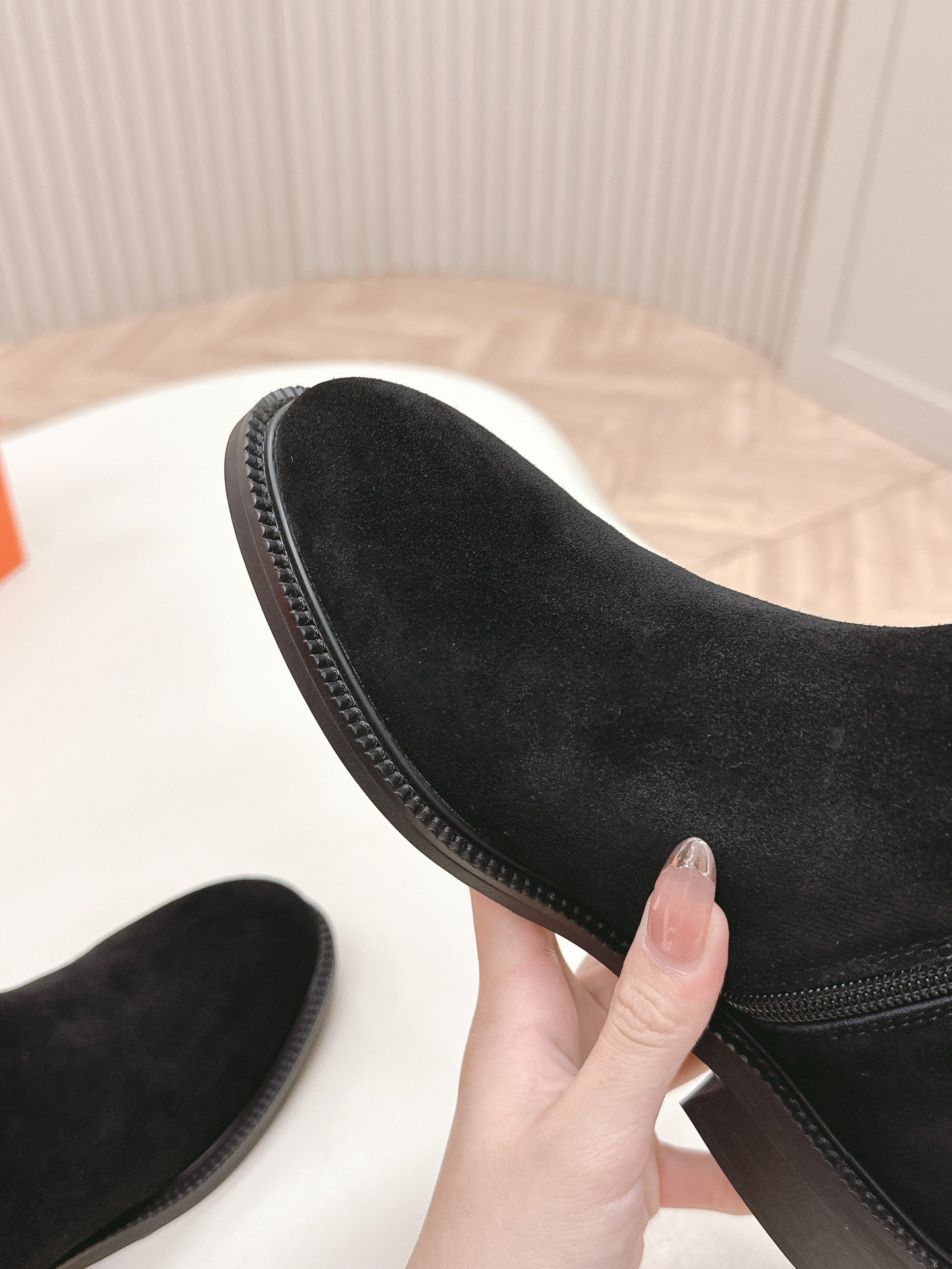 KNEE HIGH BOOTS IN BLACK SUEDE WITH SILVER BUCKLE