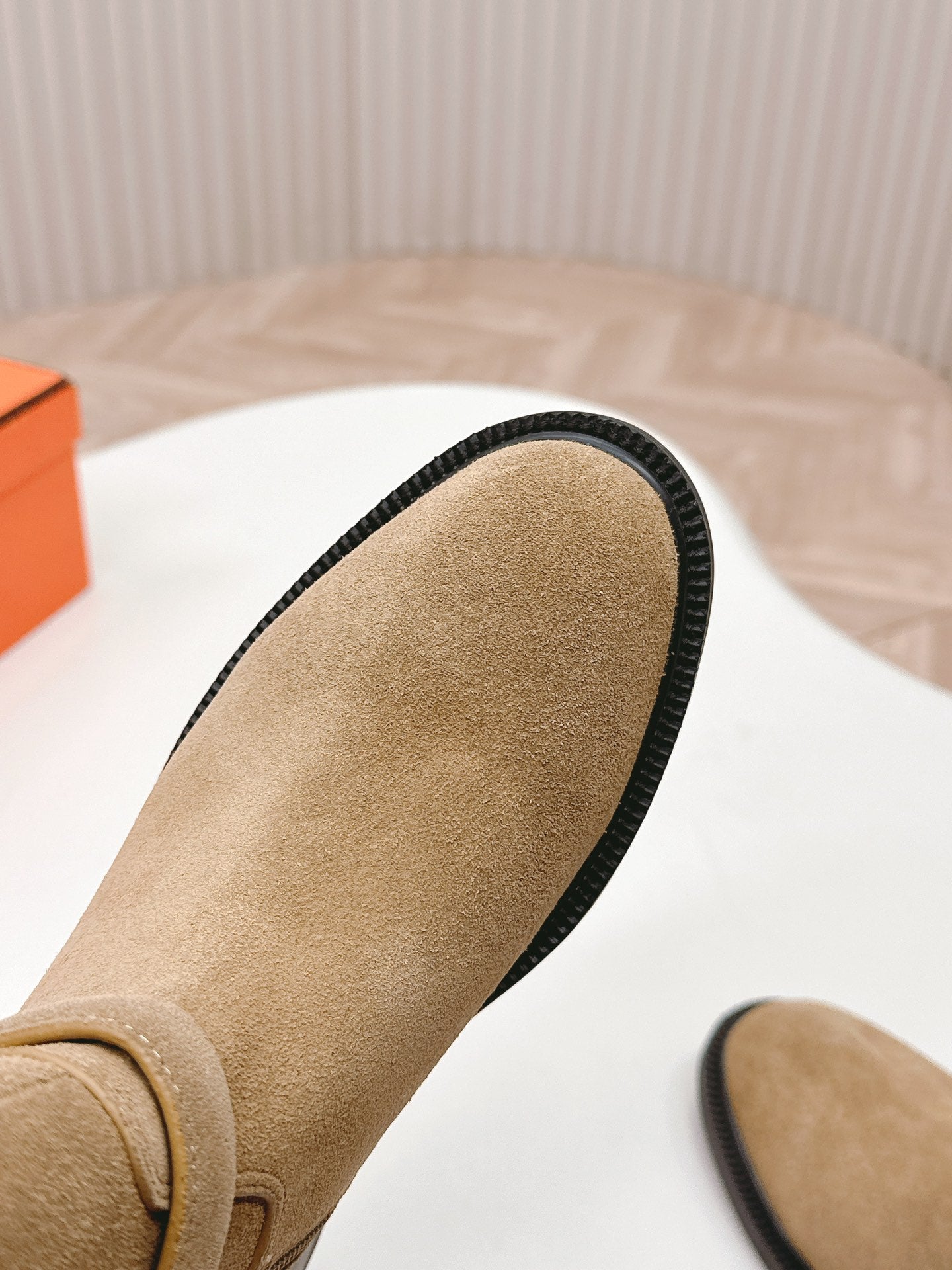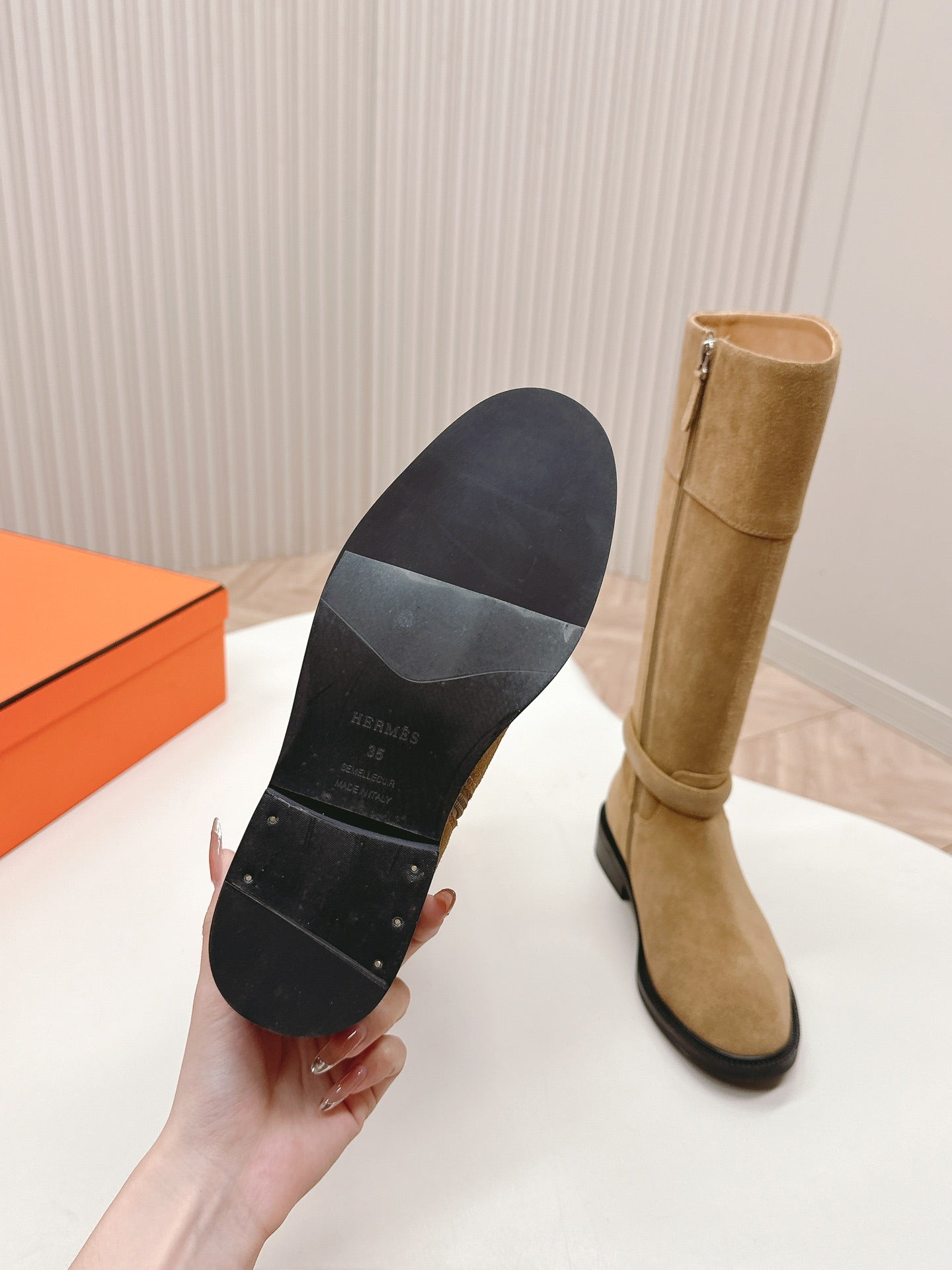KNEE HIGH BOOTS IN CIDER BROWN SUEDE WITH SILVER BUCKLE