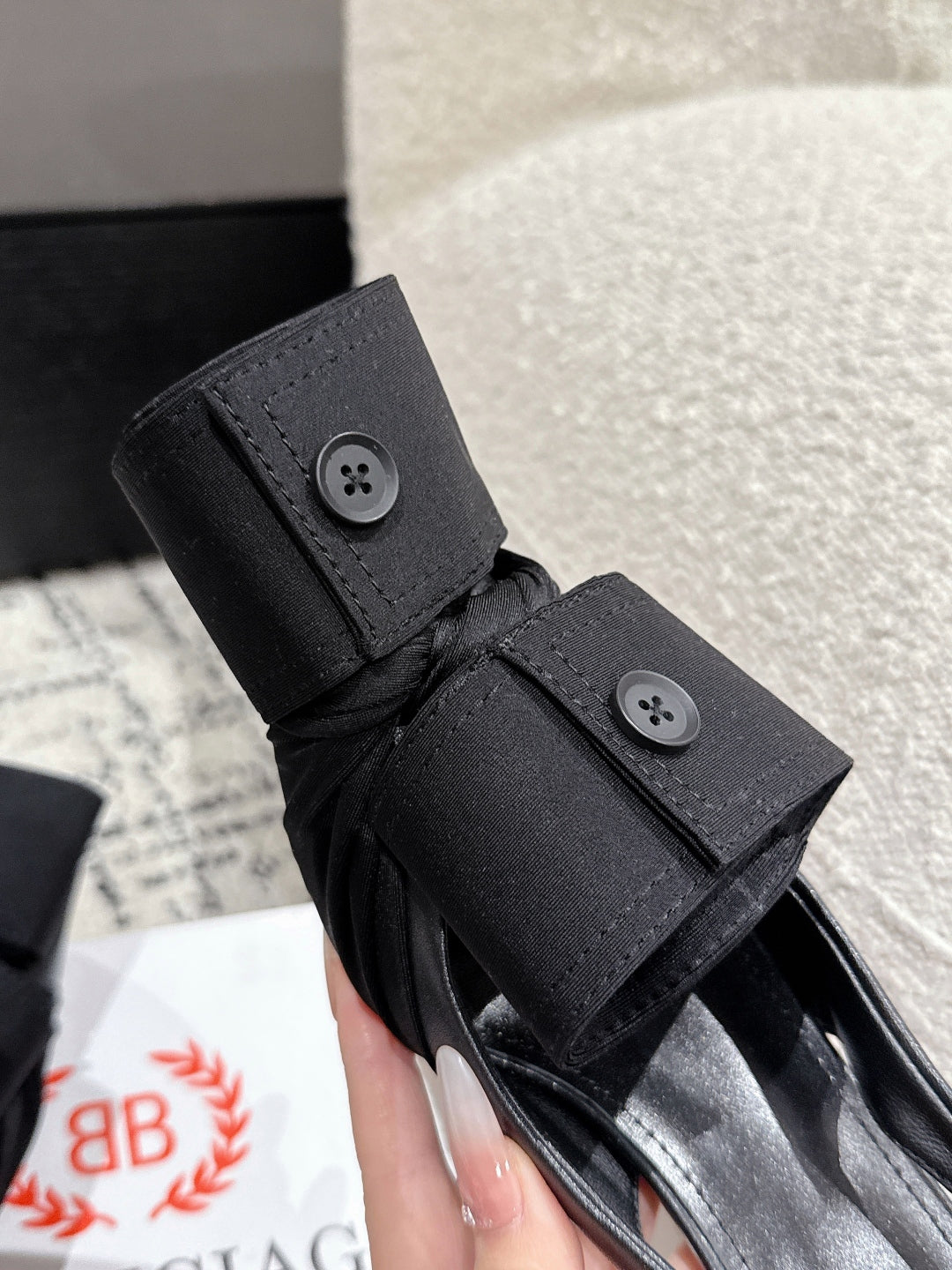 KNIFE CHEMISE 45MM SLINGBACK IN BLACK COTTON AND CALFSKIN