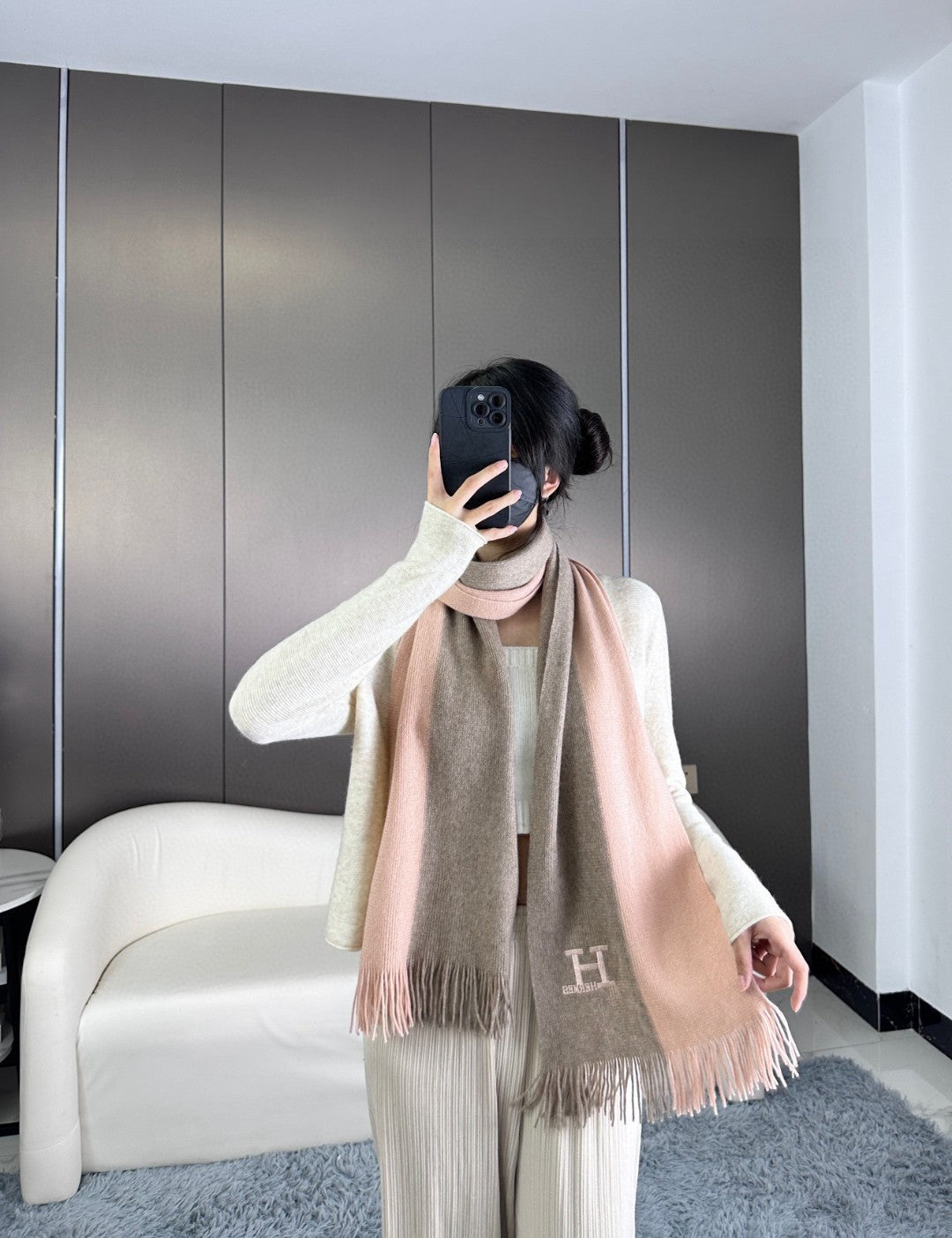 KNIT SCARF 180 IN LIGHT PINK MIX GREY CASHMERE