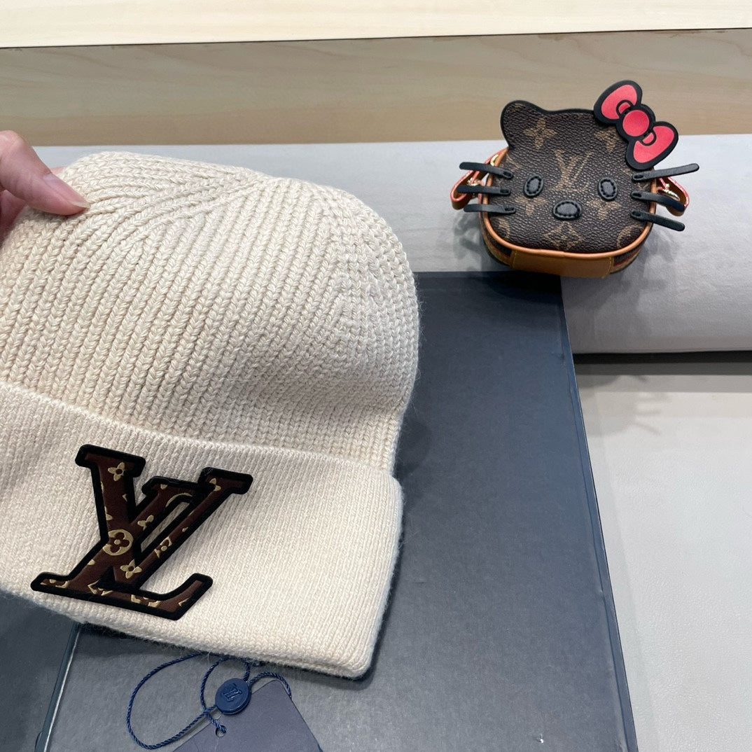KNITTED BEANIE HAT IN BEIGE FLEECE AND WOOL 426207