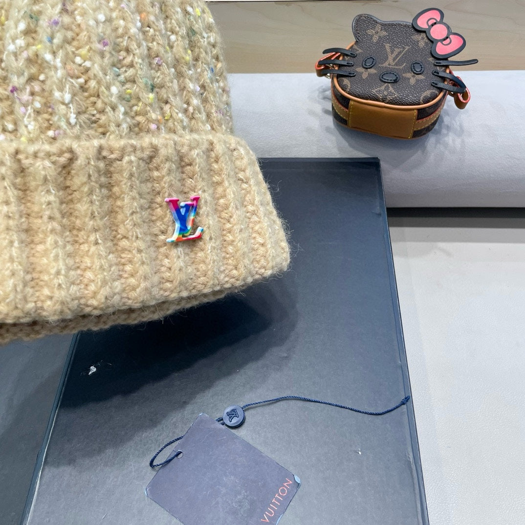 KNITTED BEANIE HAT IN CREAM BEIGE WOOL 431618