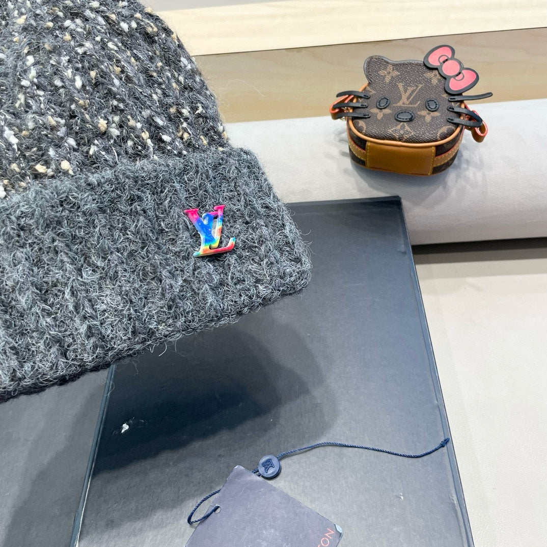 KNITTED BEANIE HAT IN GRAY WOOL 431617