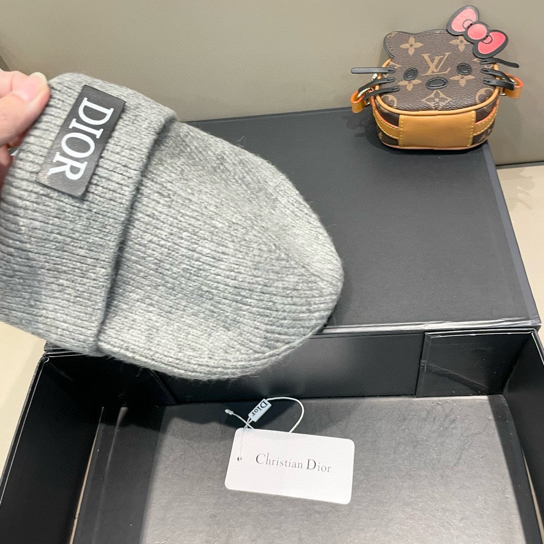 KNITTED BEANIE HAT IN LIGHT GRAY WOOL AND RABBIT FUR 439675