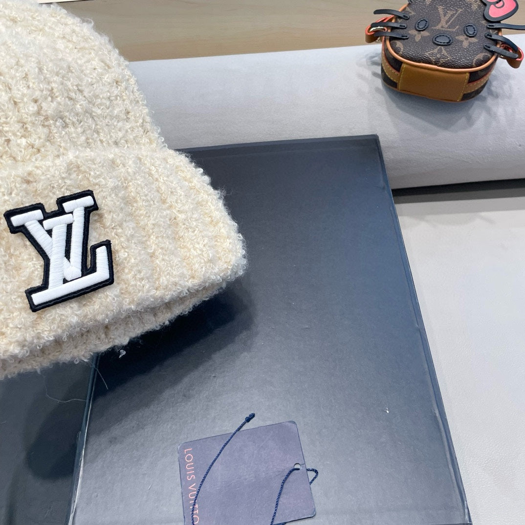 KNITTED BEANIE HAT IN LIGHT BEIGE WOOL 421267