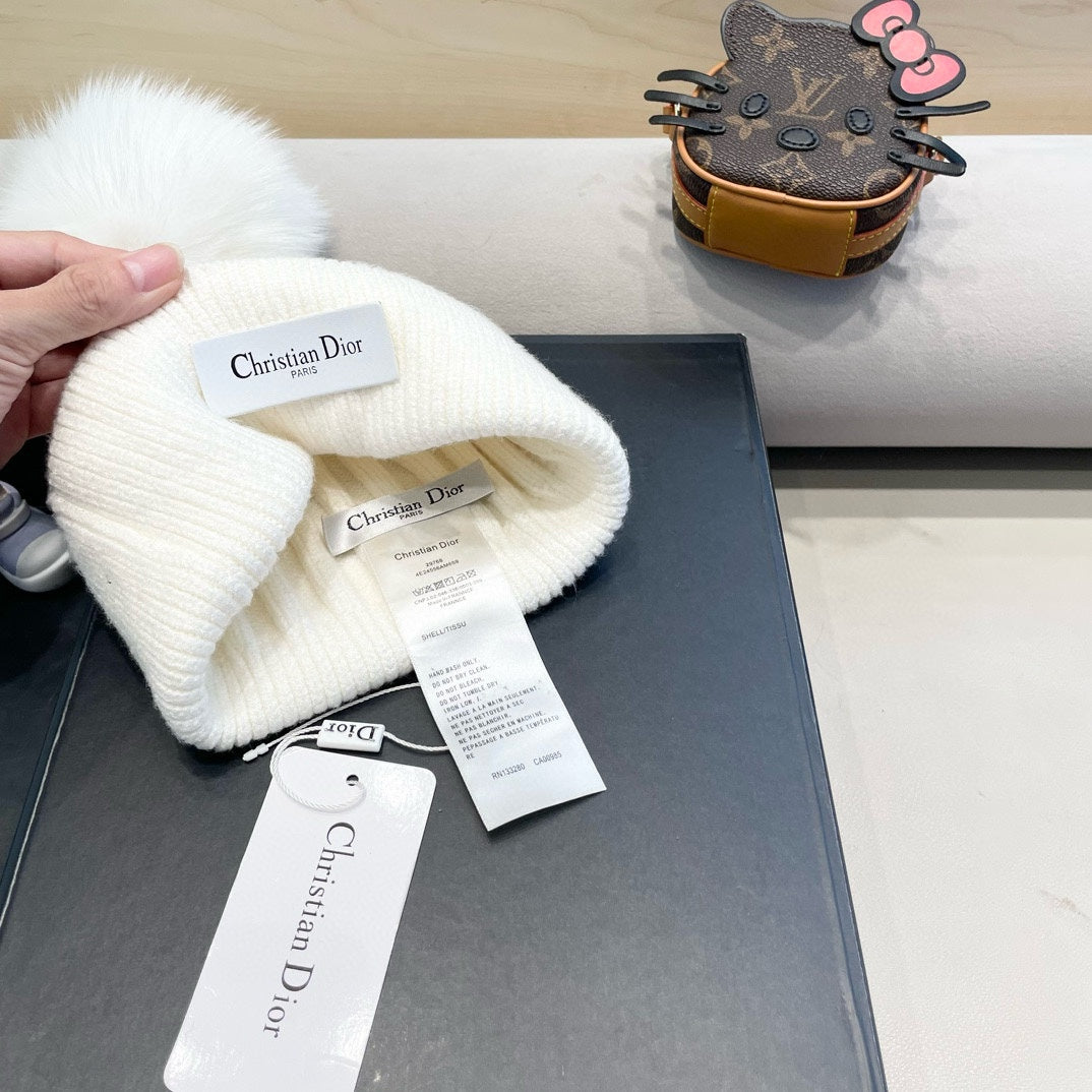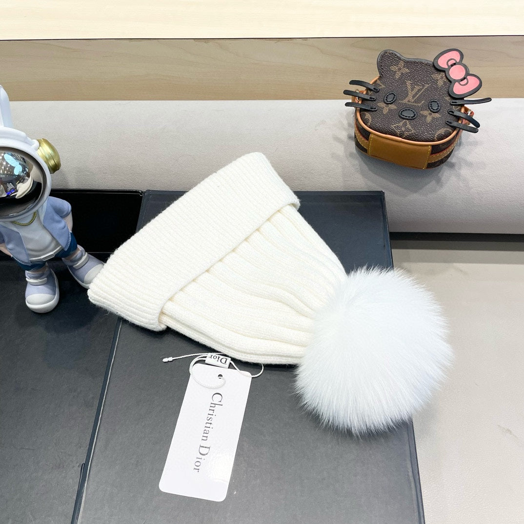 KNITTED BEANIE HAT IN WHITE WOOL AND FOX FUR 435031