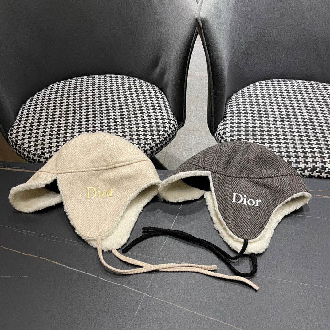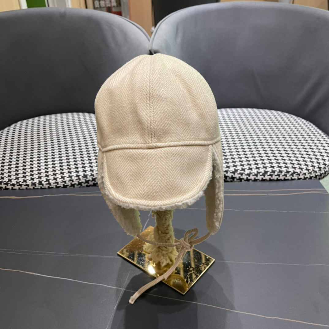 KNITTED TRAPPER HAT IN BEIGE WOOL 439524