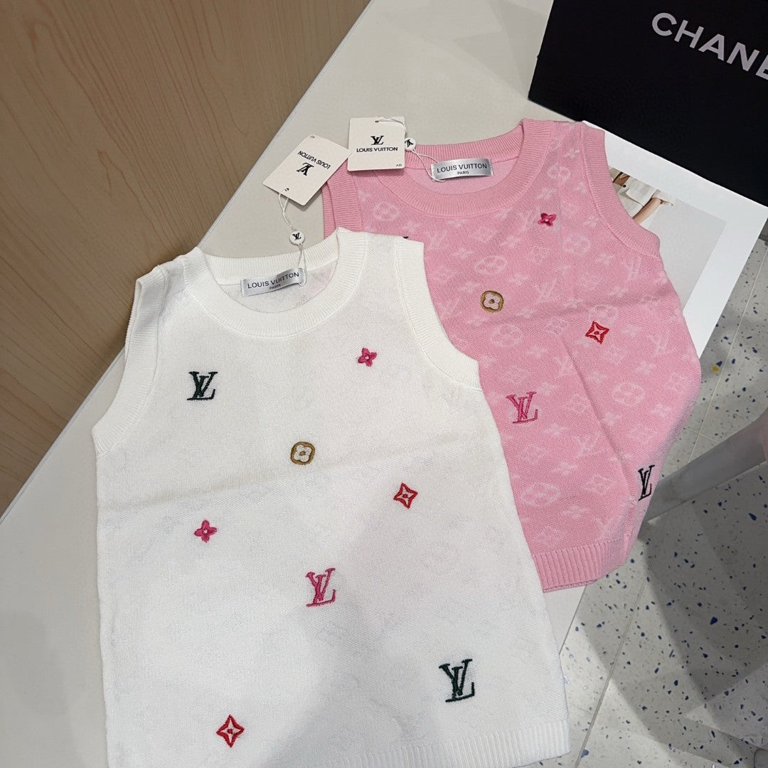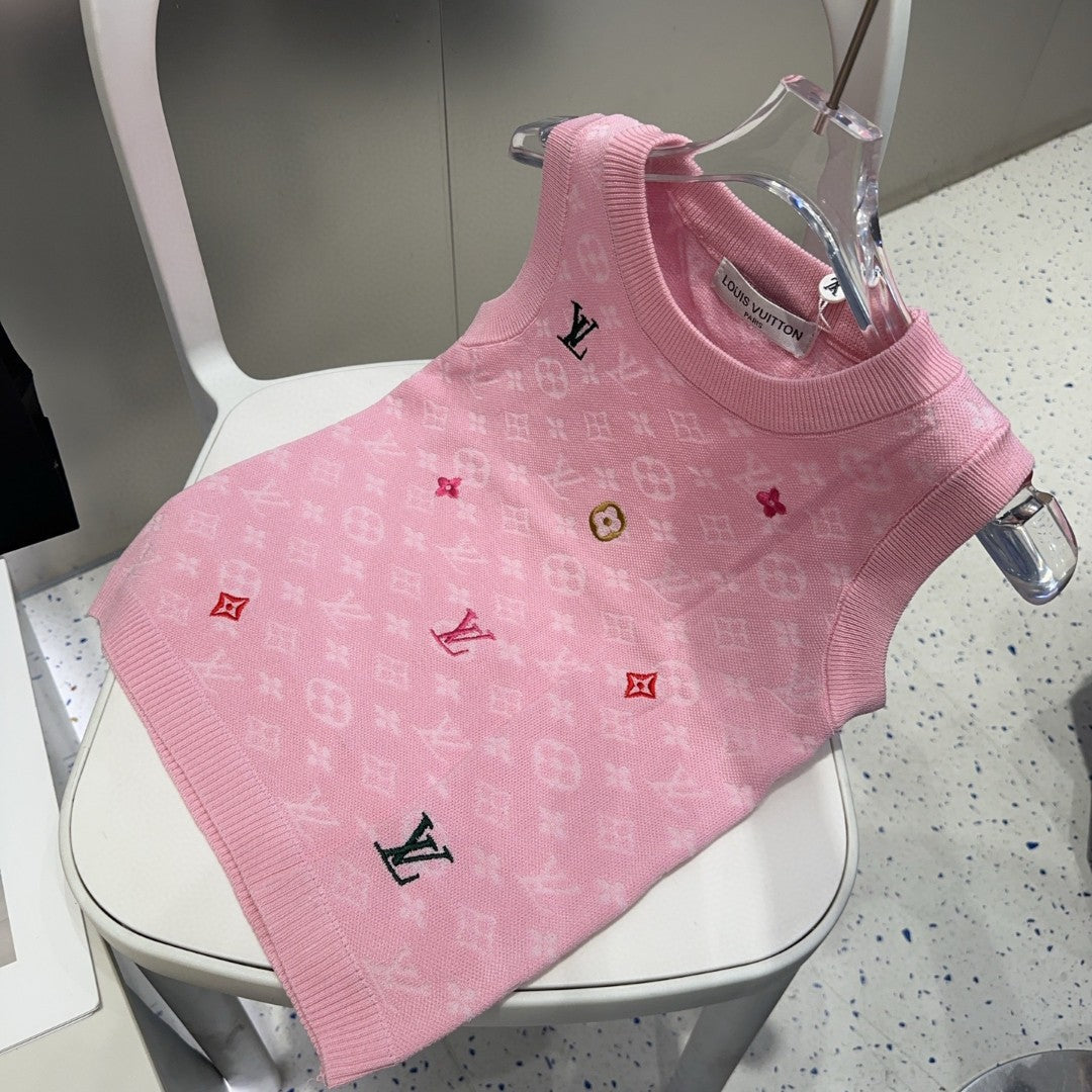 KNITTED VEST 633193 IN PINK WOOL MUTILCOLOR LOGO