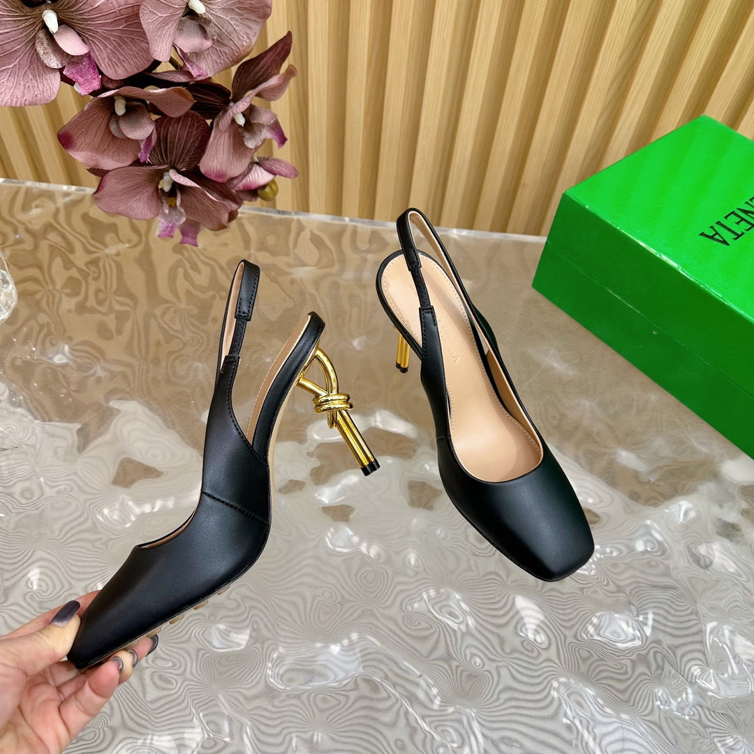 KNOT PUMP 9 CM IN BLACK CALFSKIN WITH GOLD FINISHED METAL HEEL