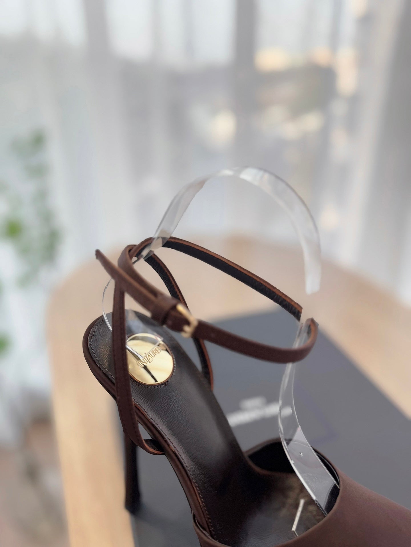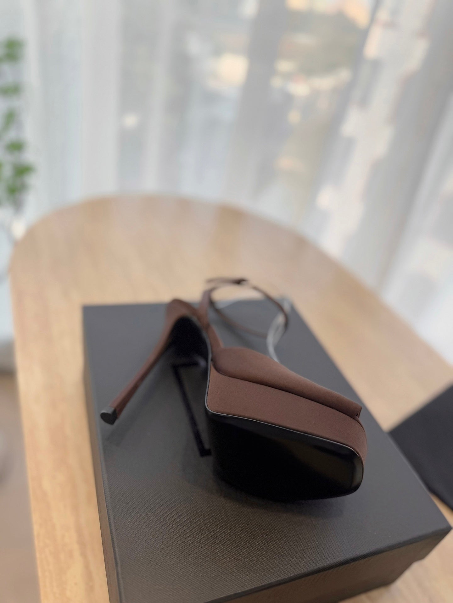 LA SCANDALE HIGH 14 CM PLATFORM SANDALS IN CHOCOLATE BROWN SATIN CREPE