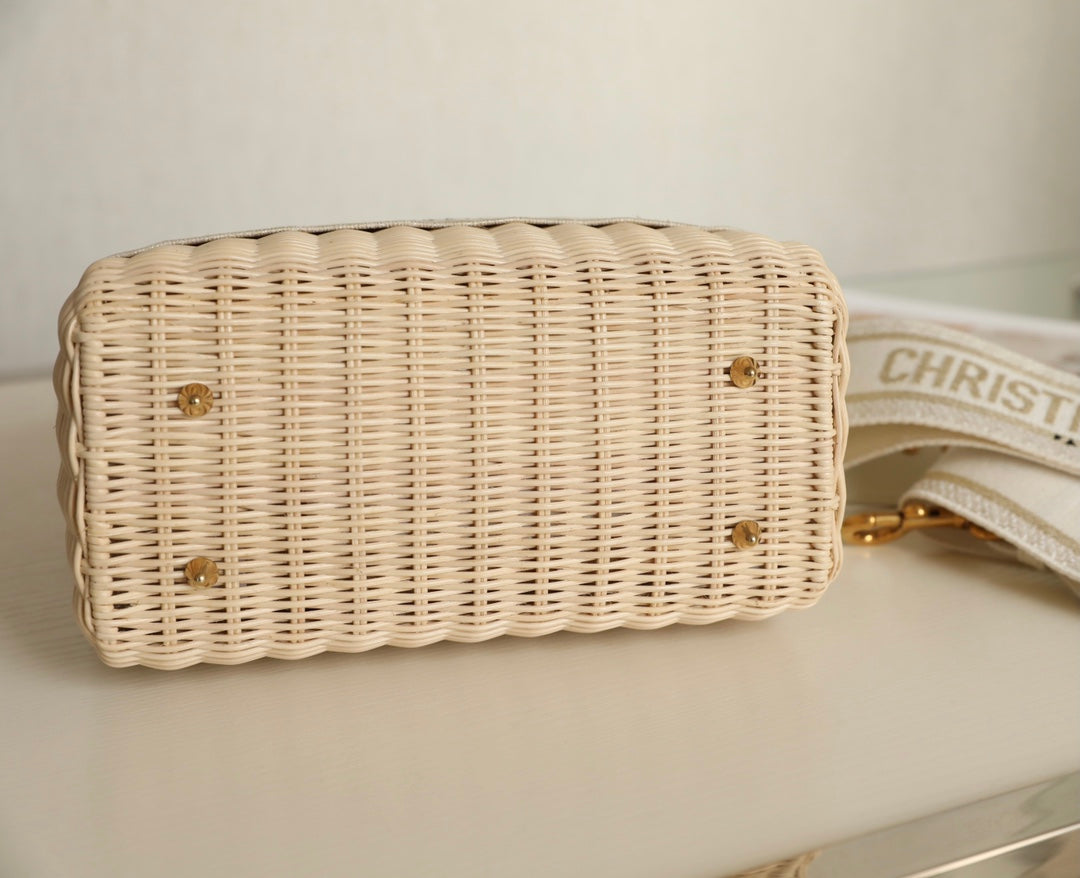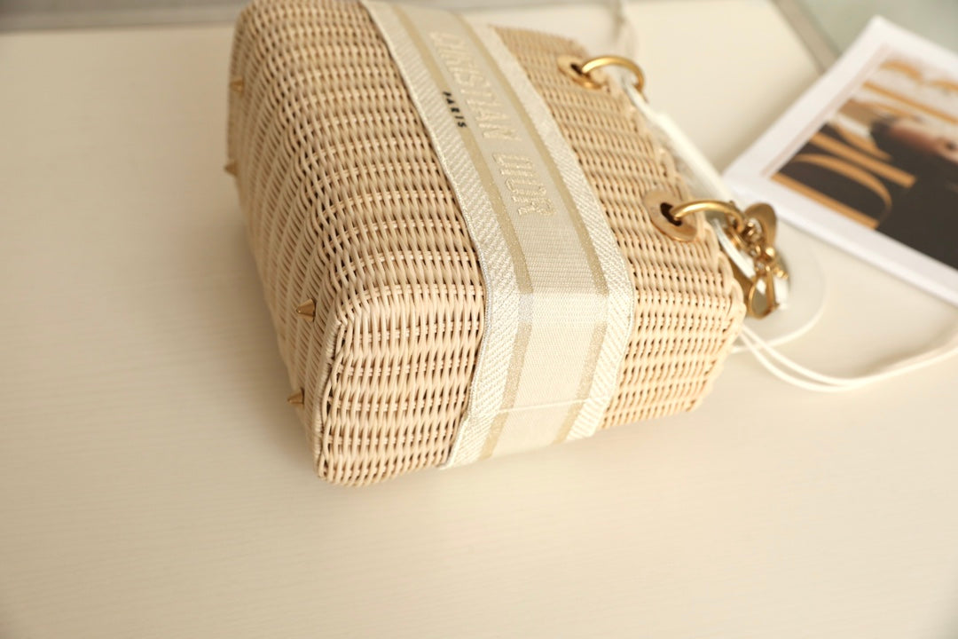 LADY 24 HANDBAG IN WHITE OBLIQUE JACQUARD AND BEIGE WICKER