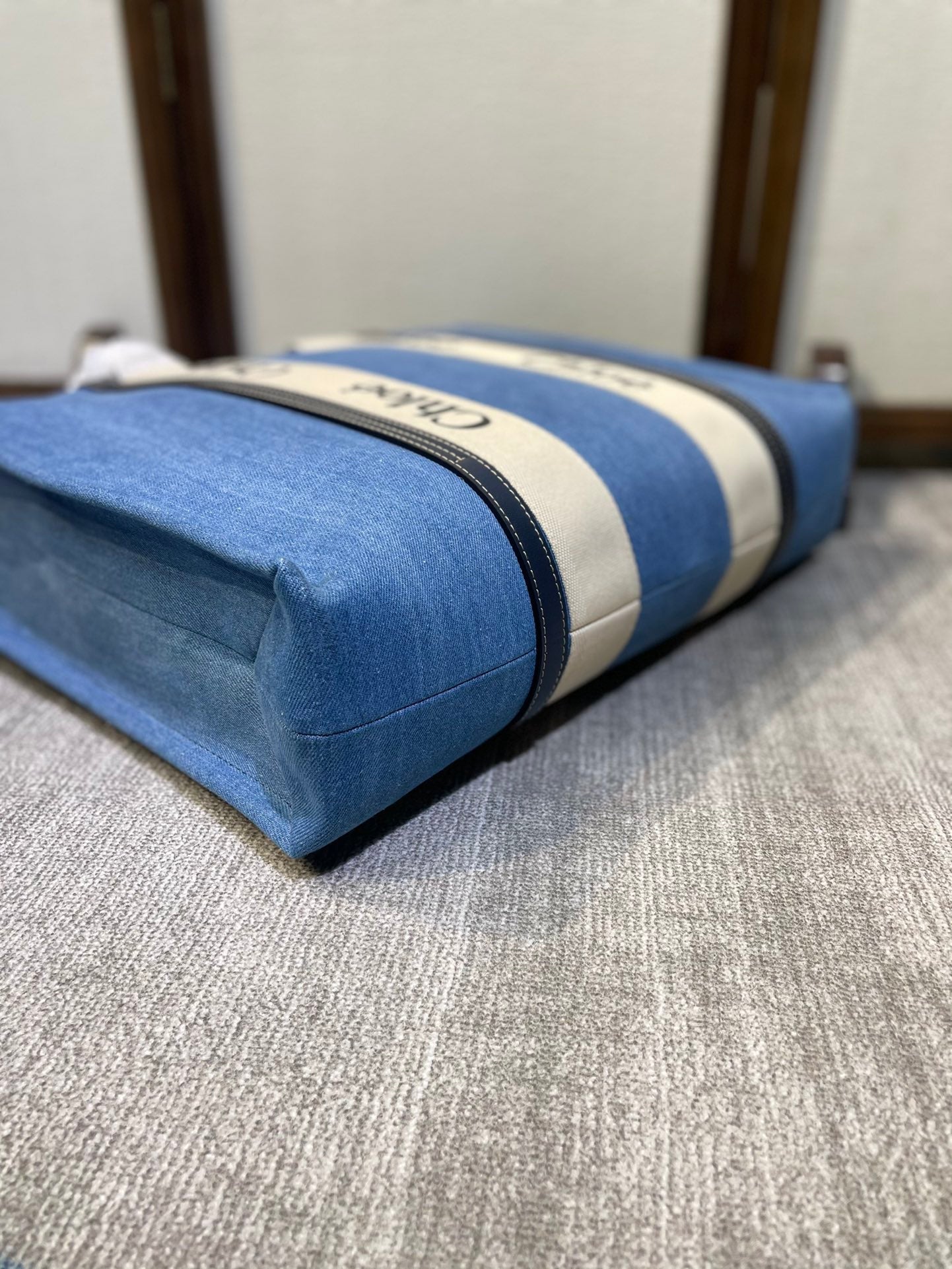 LAGRE WOODY TOTE BAG 45 IN BLUE DENIM DARK BLUE CALFSKIN