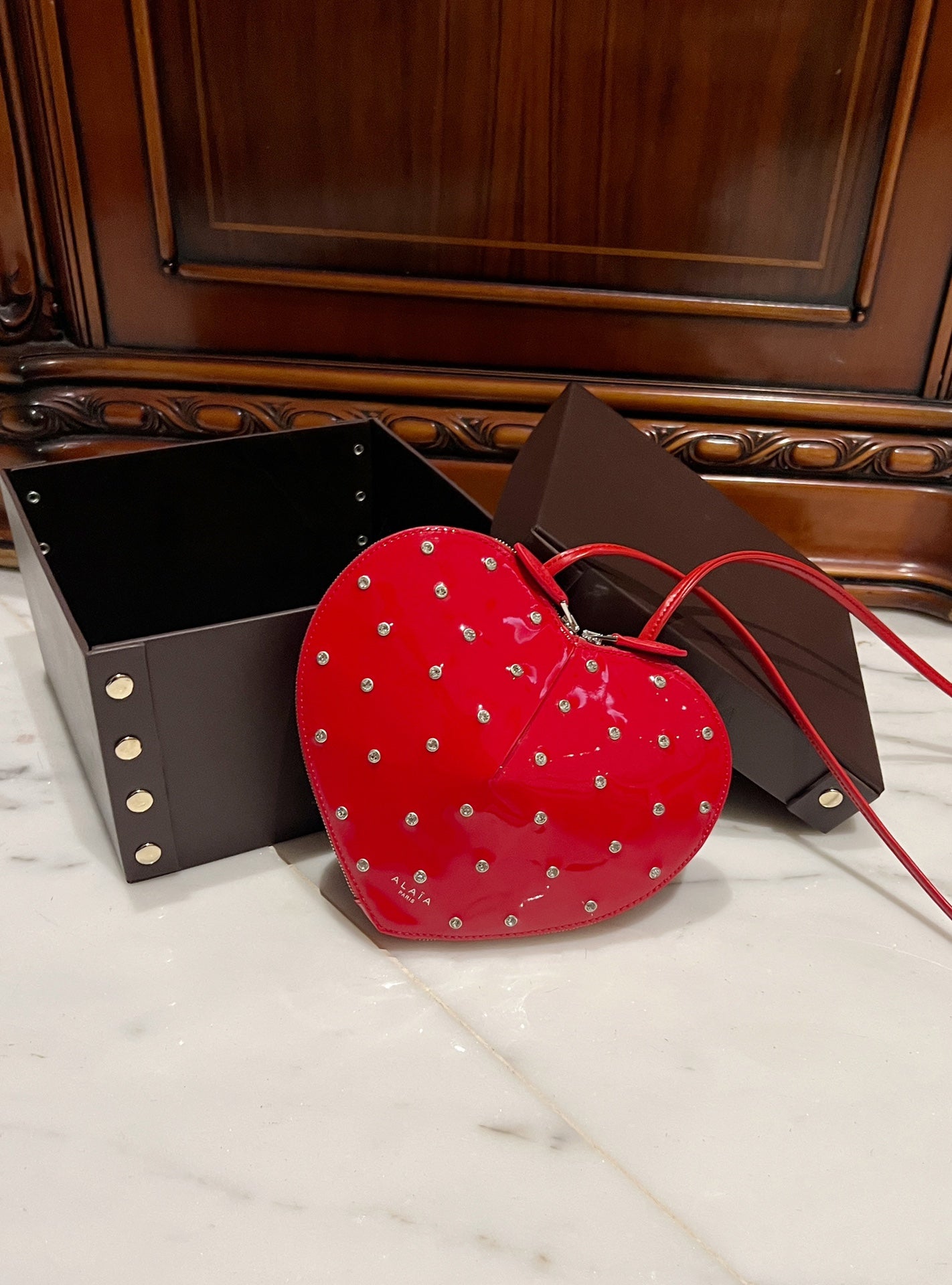 LE COEUR BAG 21 IN CANDY RED PATENT CALFSKIN ATTACHED STRASS