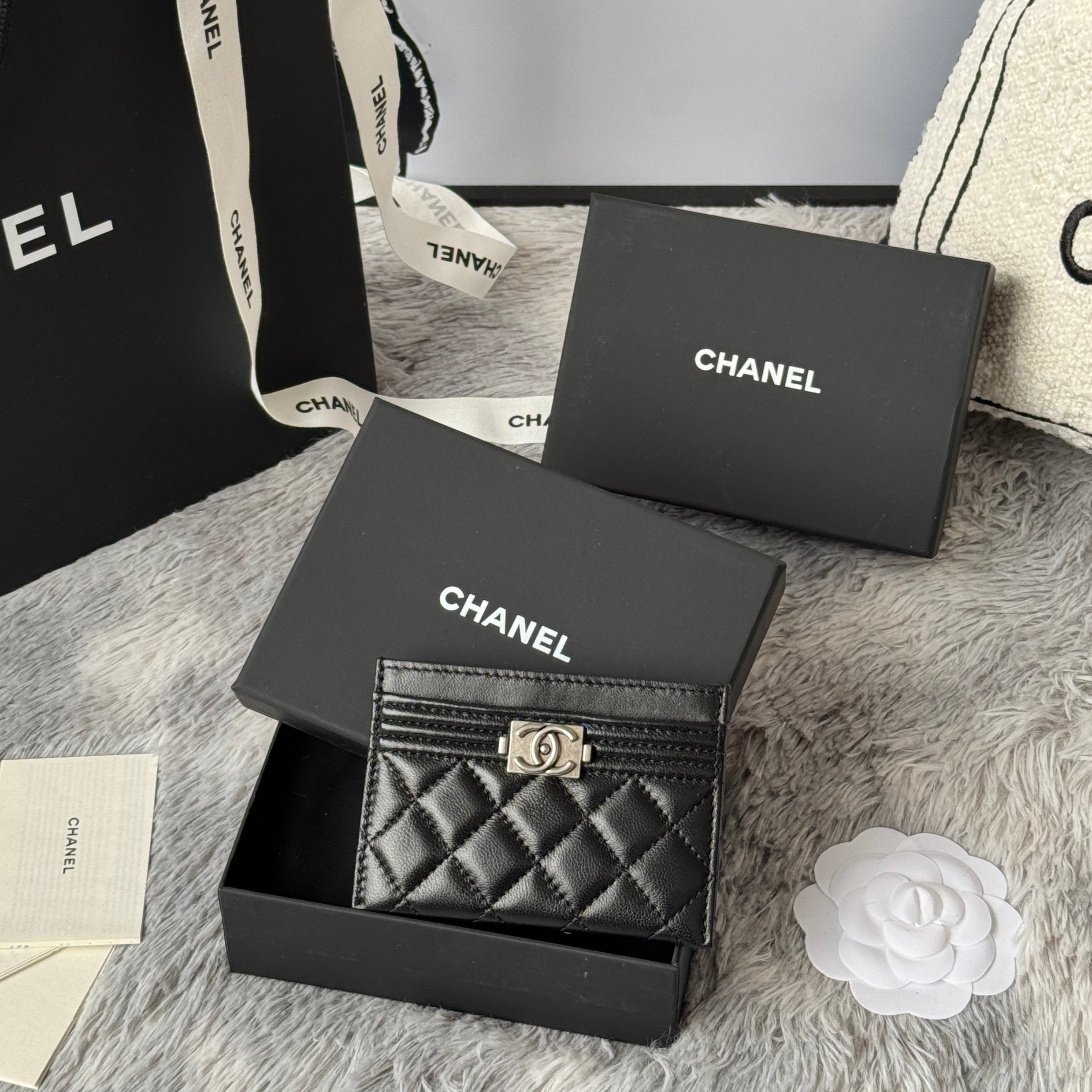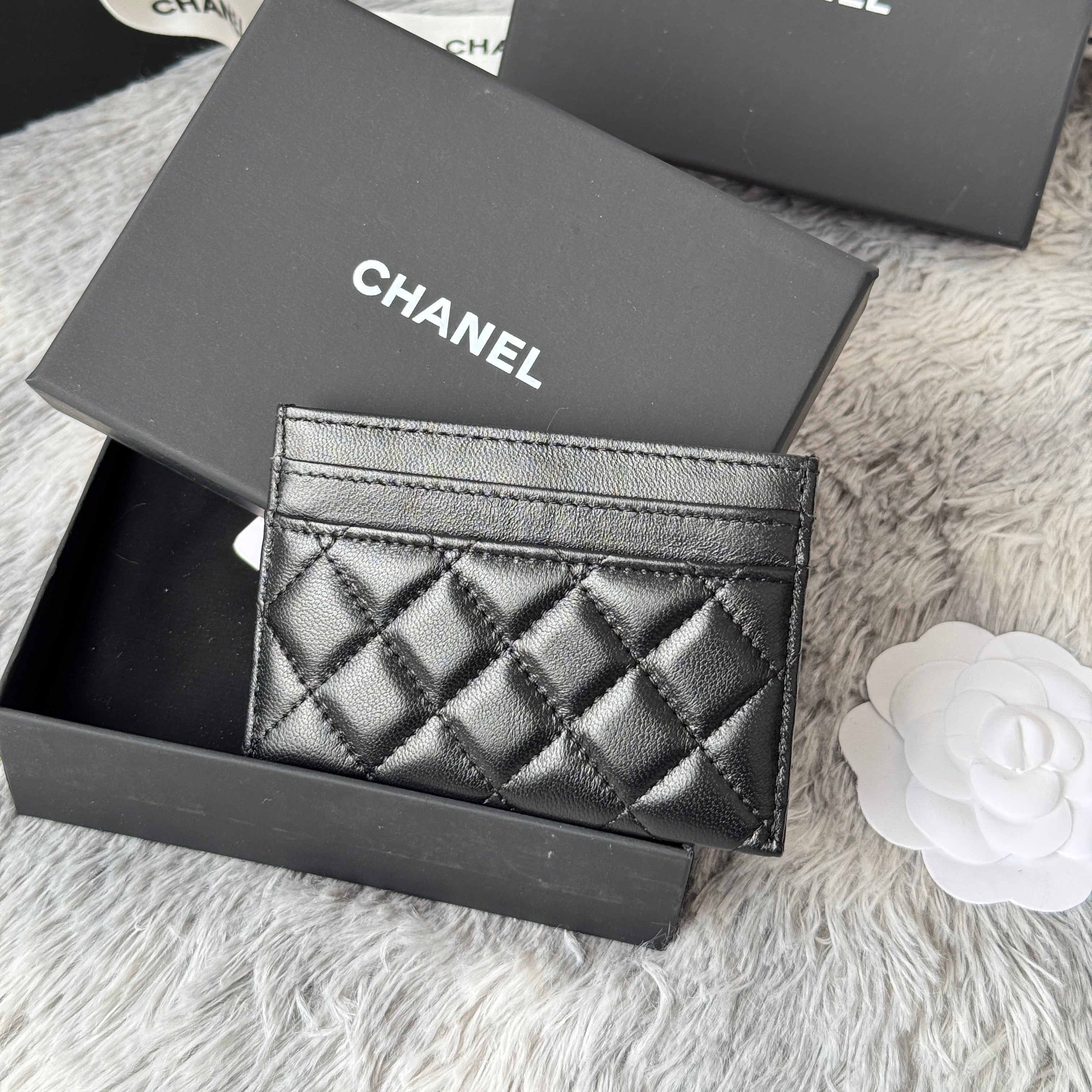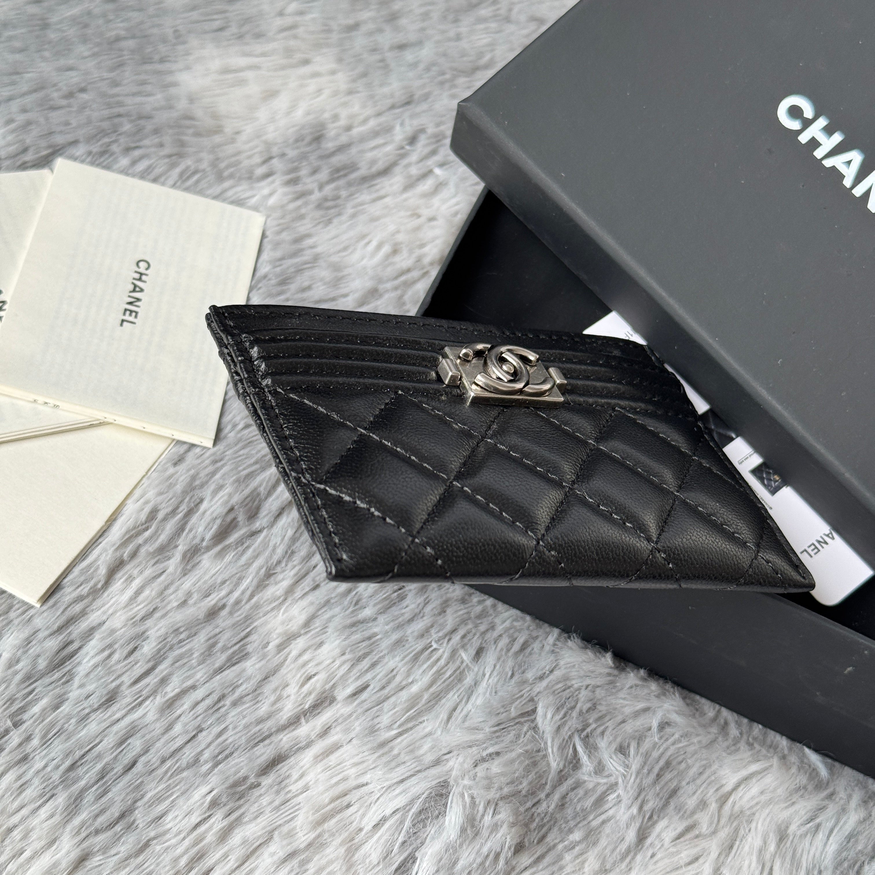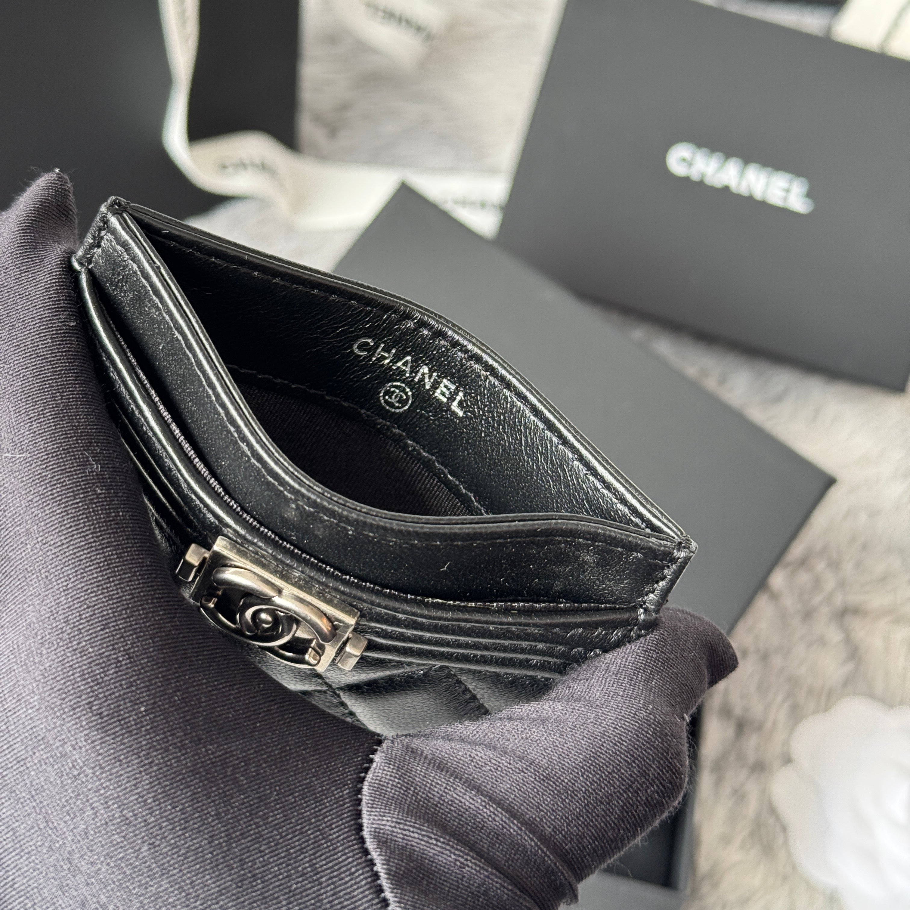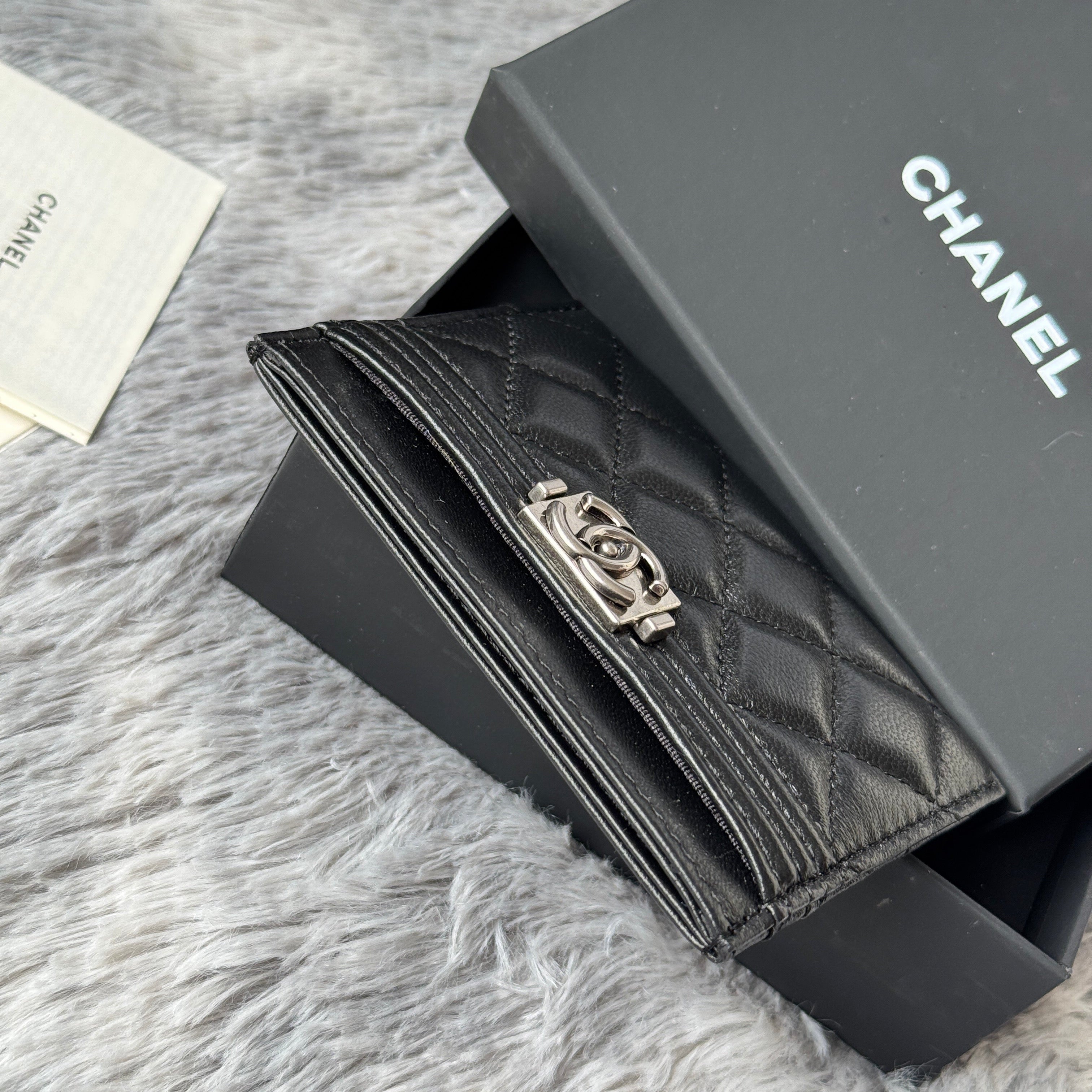 LEBOY CARD HOLDER 11 IN BLACK GRAINED CALFSKIN SILVER-TONE HARDWARE